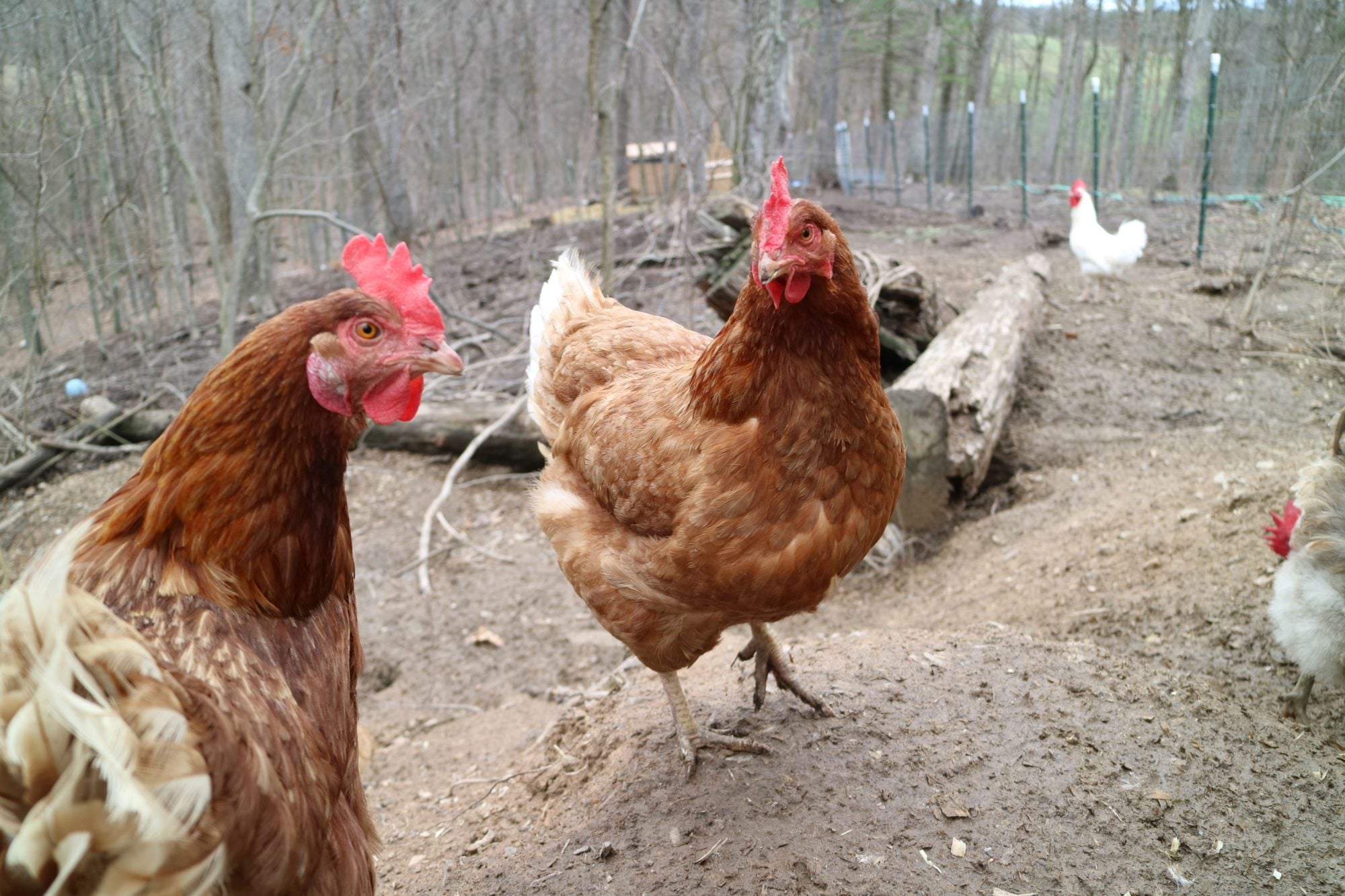 Three girls in a row. BSL and some " White Legorpintons"