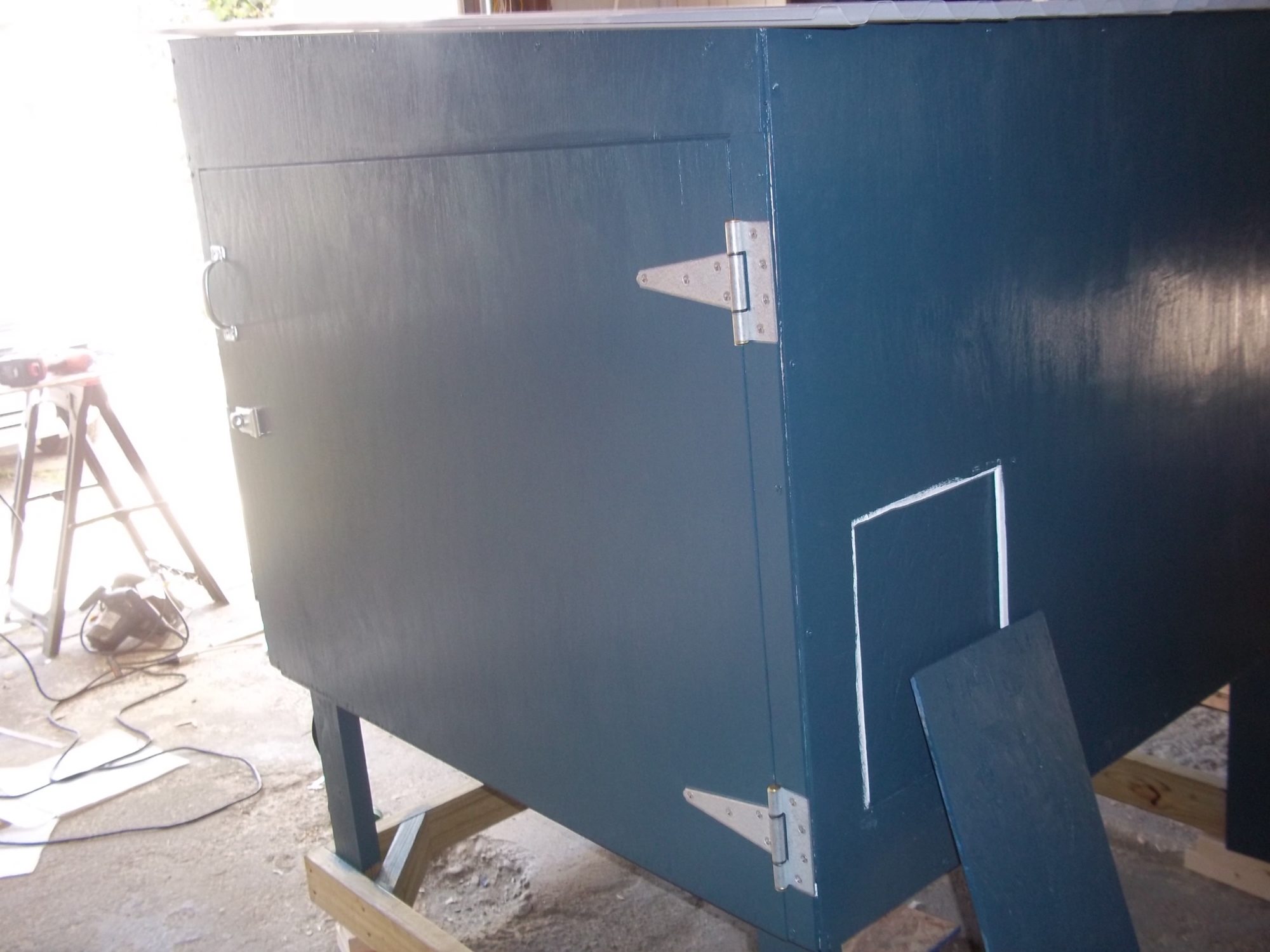 We made the door on the side the full width of the wall (minus the studs at the corners) so that the tray and wire rack could be removed and cleaned.