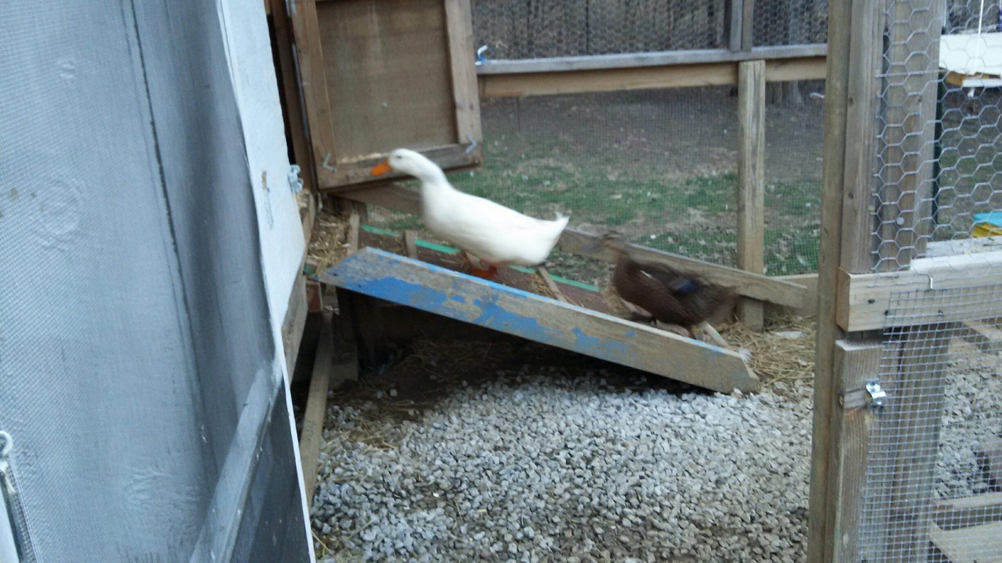 Bed time for our ducks is always at or near sunset. Once my ducks graduated to coop living after leaving their brooder, I briefly struggled trying to get them to go to bed. It was time to rely on herding them. They were already familiar with being herded so I no longer needed the sticks. I just got behind them, held my arms out and walked them toward the coop. The entire time I did this, I said, "bed time". As soon as they were all safely in the coop, I grabbed a plastic zip lock bag from my pocket which was full of treats. I shook the bag and tossed the treats into their coop saying, "good duck". I made sure they could hear the rustling of the bag. This routine was repeated for 2 weeks or so.