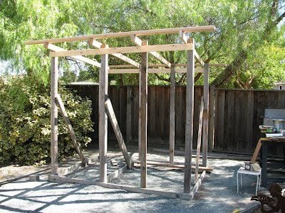 Here is the starting point, after taking the original structure down to it's 4x4 corner posts and pressure-treated 2x6 base.