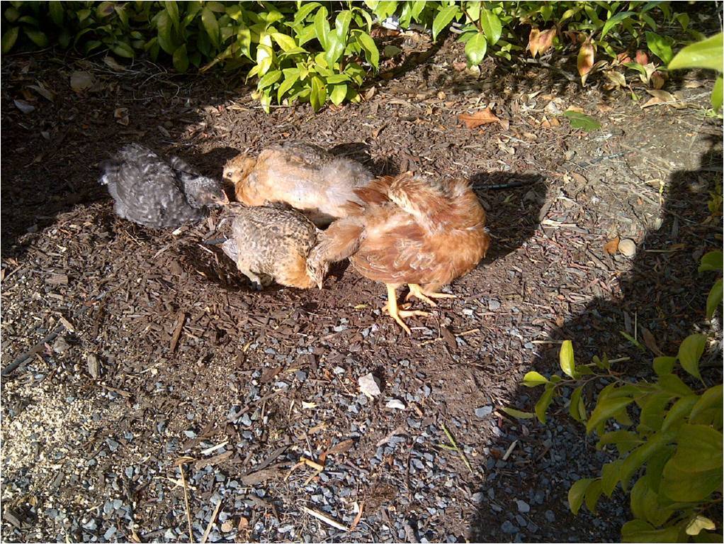 Once we had proper accommodation, we brought our babies home from the feed store. Two of them were said to be Araucanas, but I have learned from this site they are probably EE's. We love them. We also have a Barred Plymouth Rock, a Rhode Island Red, and some other Red bird with a murky background.