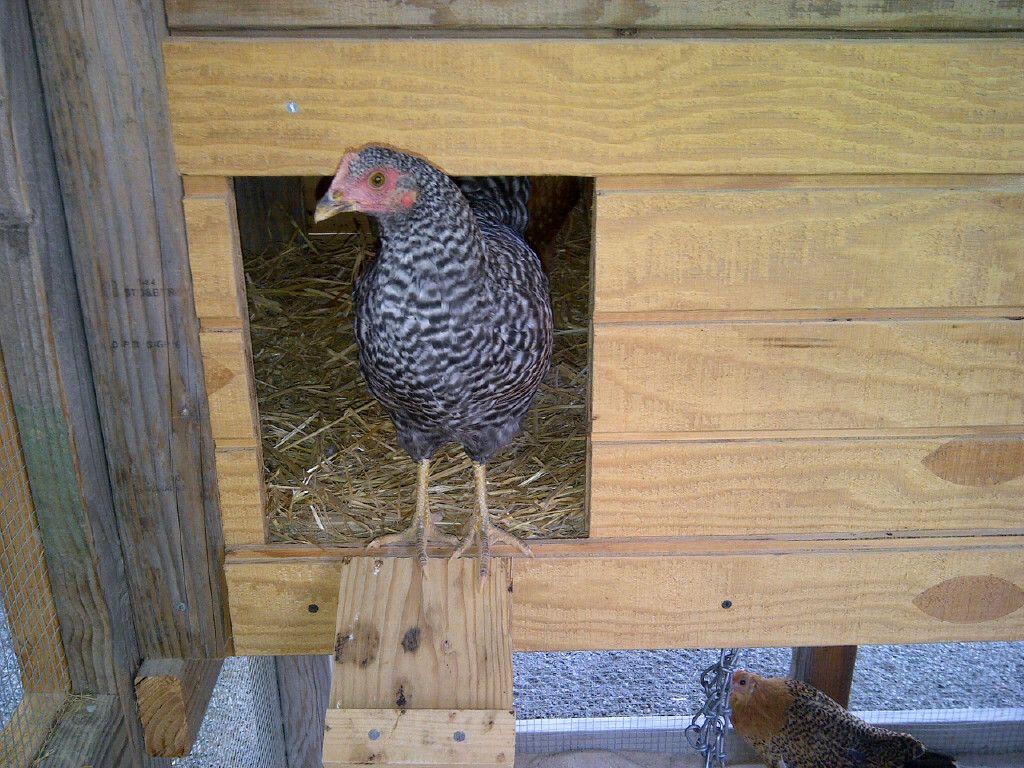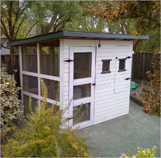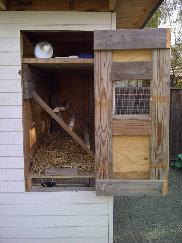 I made a lean to roost from recycled 2x4's. The top pole is from our pomegranate, which got a severe haircut this summer. I think a natural pole is a more comfortable grip for our girls' feet than a flat board.