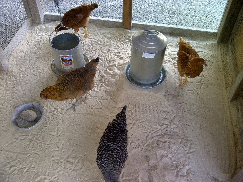 For the run we used fill sand from our local landscape materials supplier. I placed some old bricks I had around the edges of the floor to provide extra discouragement to digging varmints.