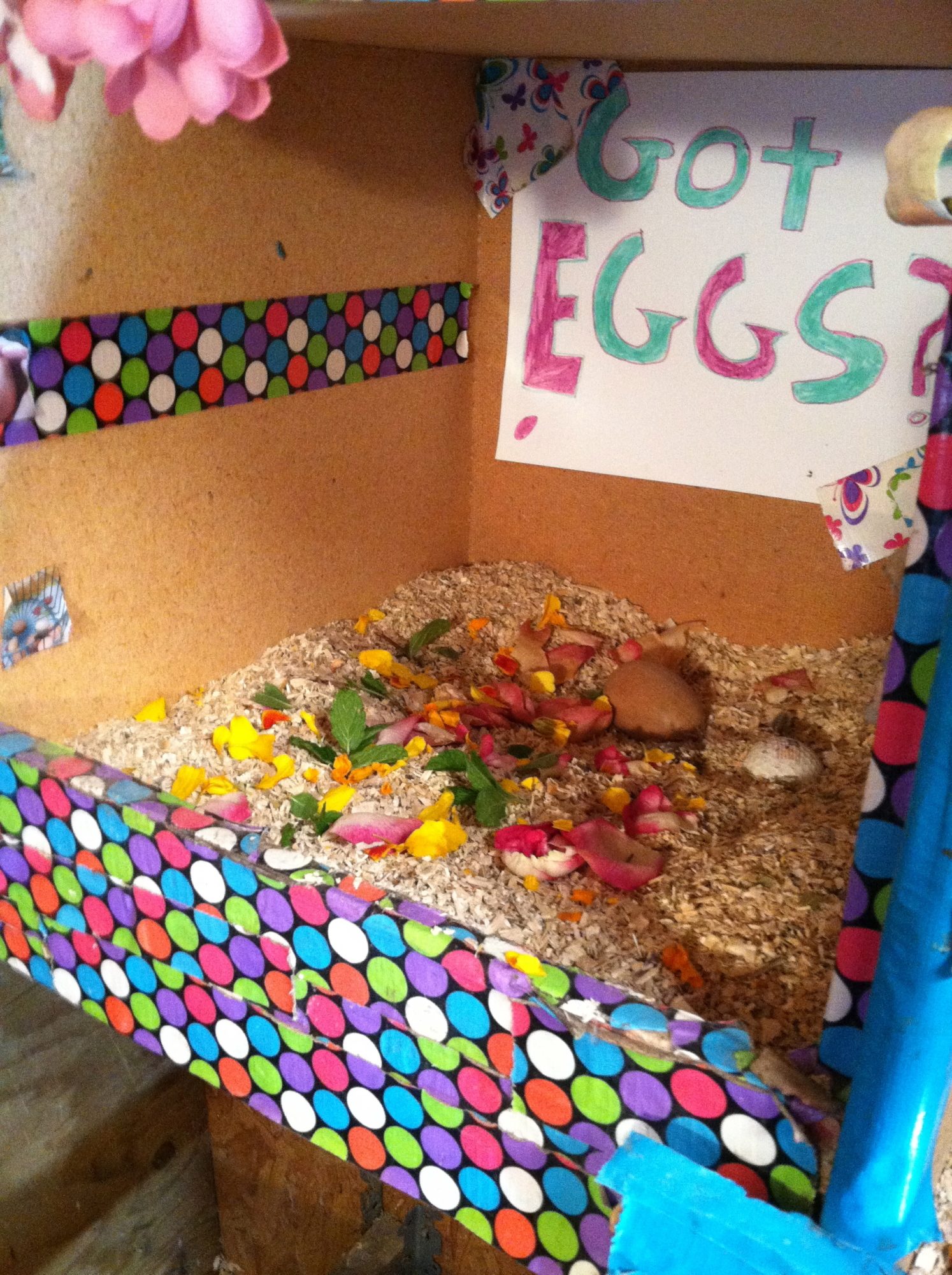 Pretty nests are a big perk for you. Your hens won't care as much. Some things I've found that can turn a boring nest into a brilliant one include duck tape, posters and fake flowers. (Make sure that your hens don't try and eat any of these items especially the fake flowers which they more than likely will try.) I put duck tape around the sides and on the inside, fake flowers on top and then a poster inside.