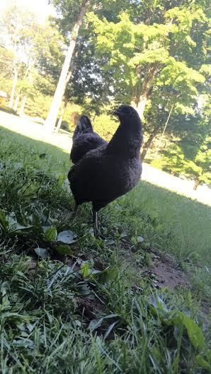 I couldn't feel happy with just one chicken. It wasn't a selfish need for more, but a need for Kevin to have company. Living in solitude is no way to live, so I went and bought two Seramas and a Silkie rooster from a member on BYC! Kevin hated them for a long time, but the little rooster persisted. He let Kevin antagonize him, and peck him, but he still followed her. Today they are inseparable and share the reinvented dog cage at night. Kevin and Toto rule the yard and have formed an alliance like soldiers. Kevin leads the way, and Toto guards it. Kevin still doesn't like the seramas much, but Toto steps between fights and allows everyone to graze happily all over the four acre yard.