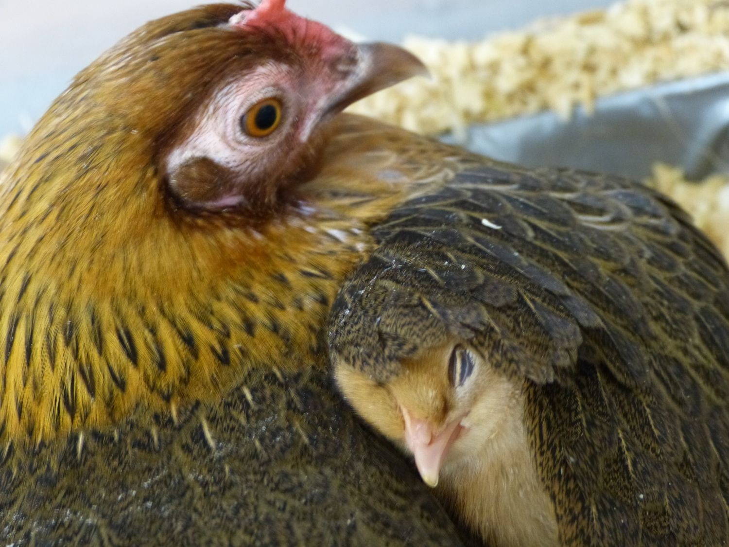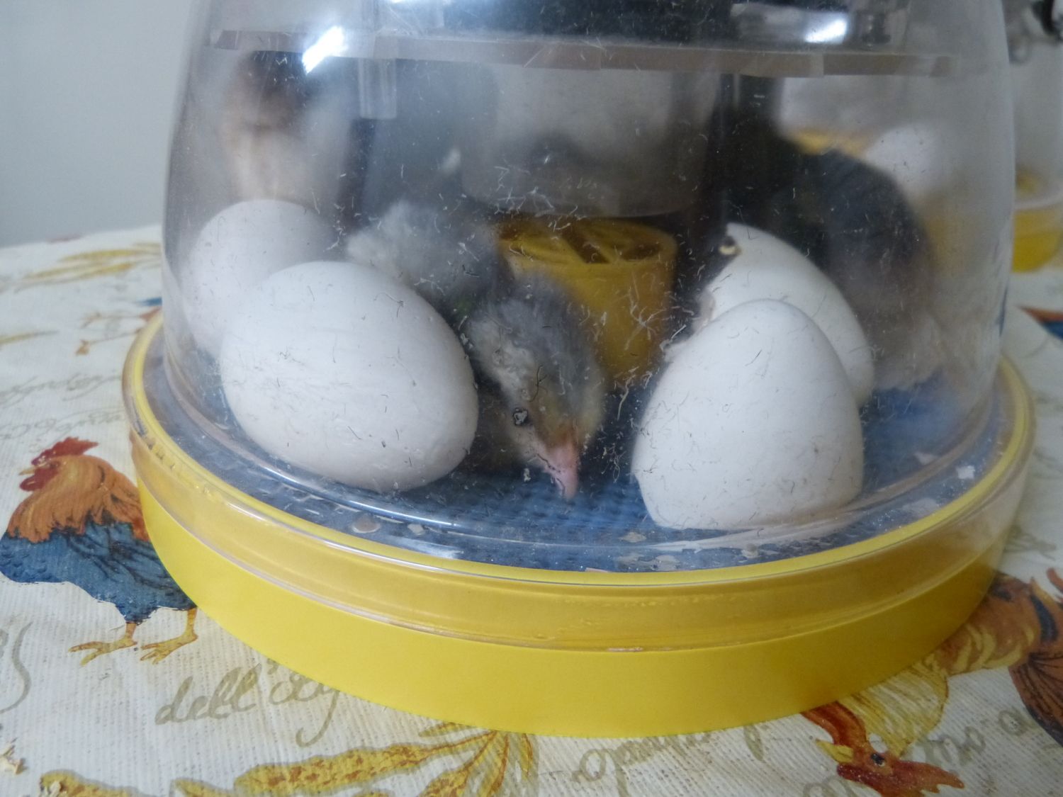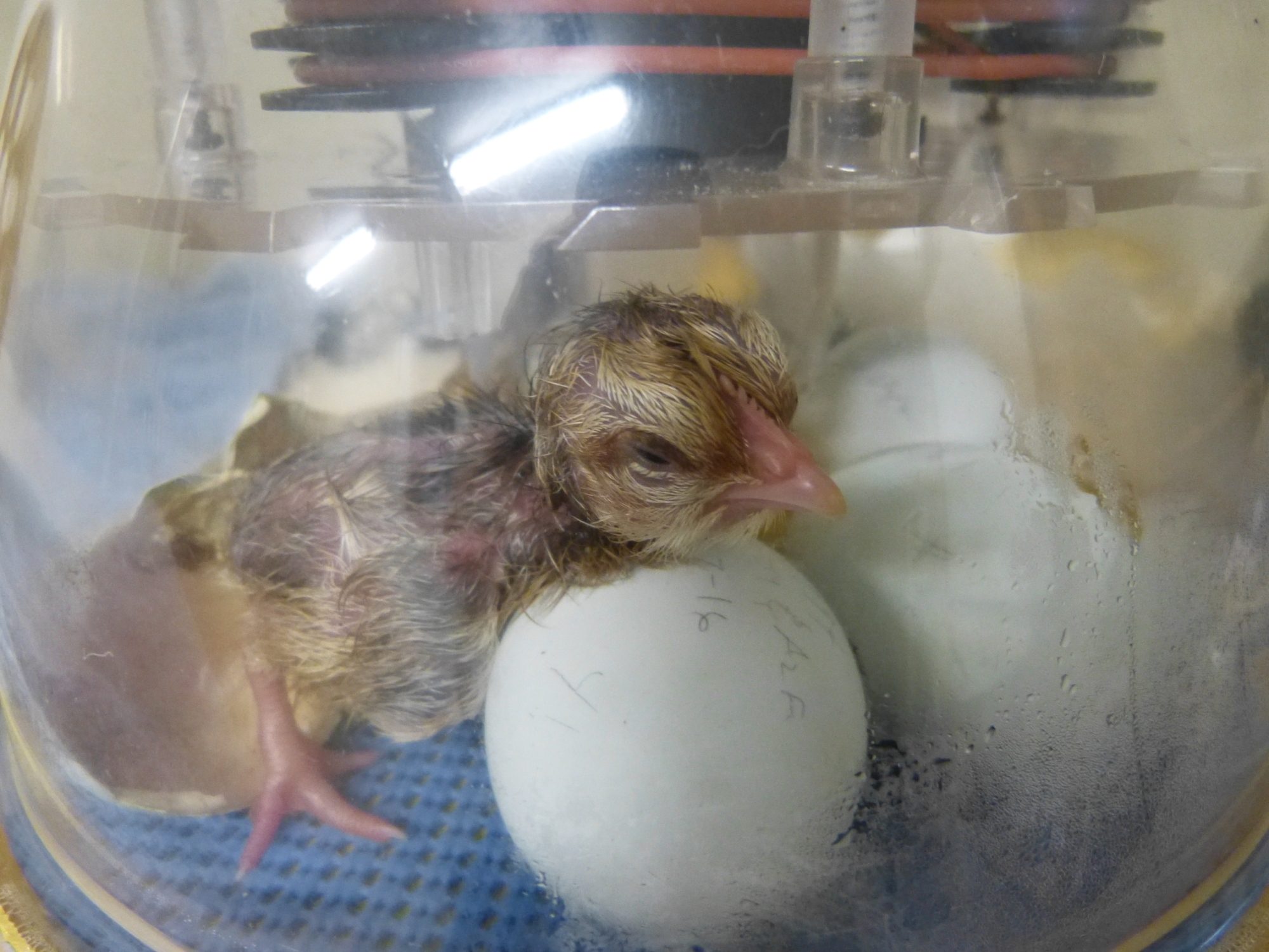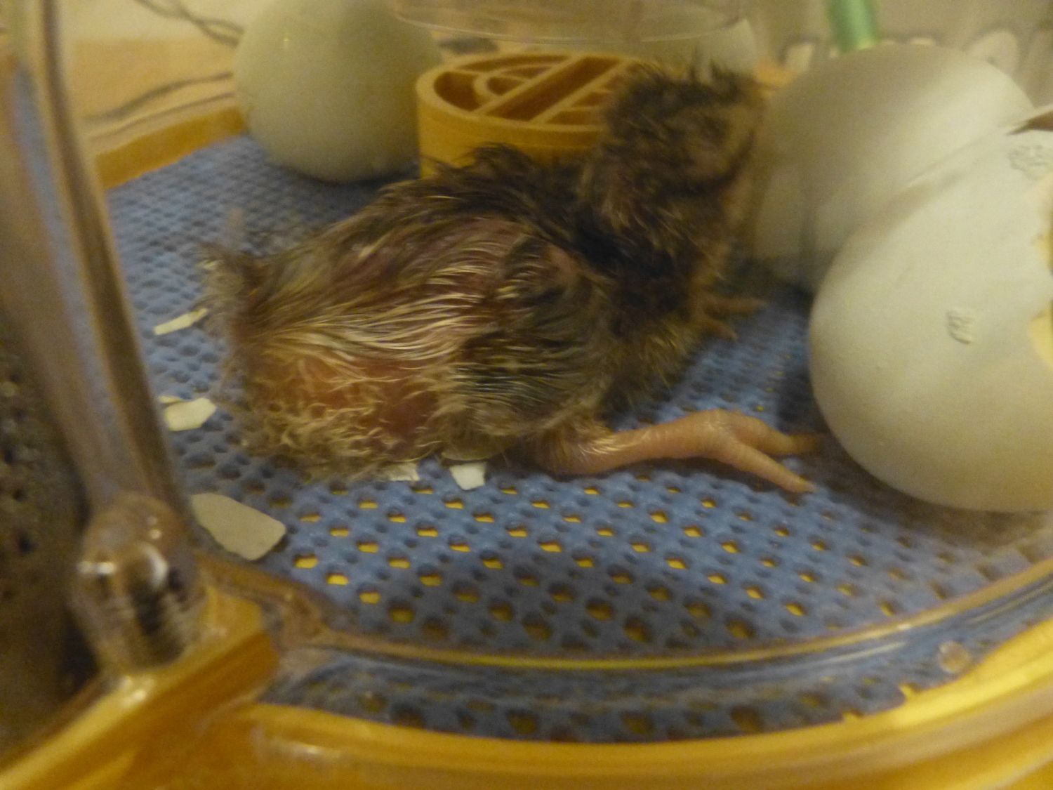 2014-09-23 - Looking Back/Looking Ahead - Overnight -- a hatch!!! Hatch day is tomorrow. Had forgotton how very very little they are when they hatch. 'IT's a GIRL'--- So pleased to have an autosexing breed and know right now - before the baby is even dried.