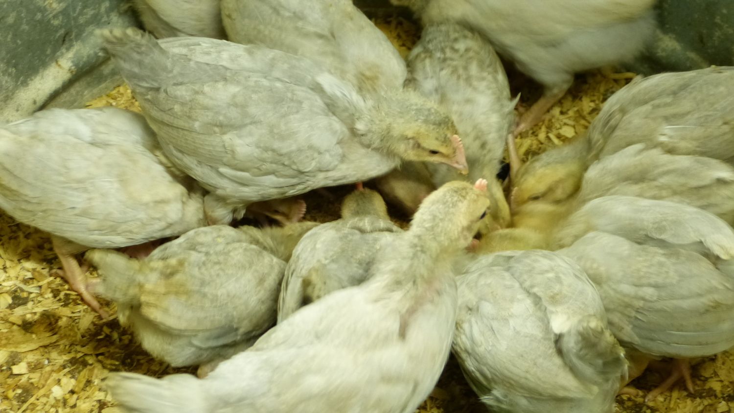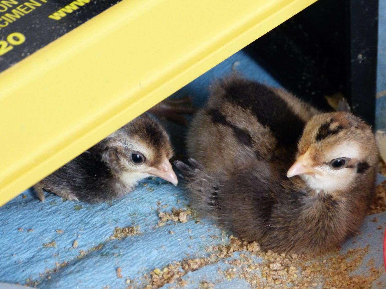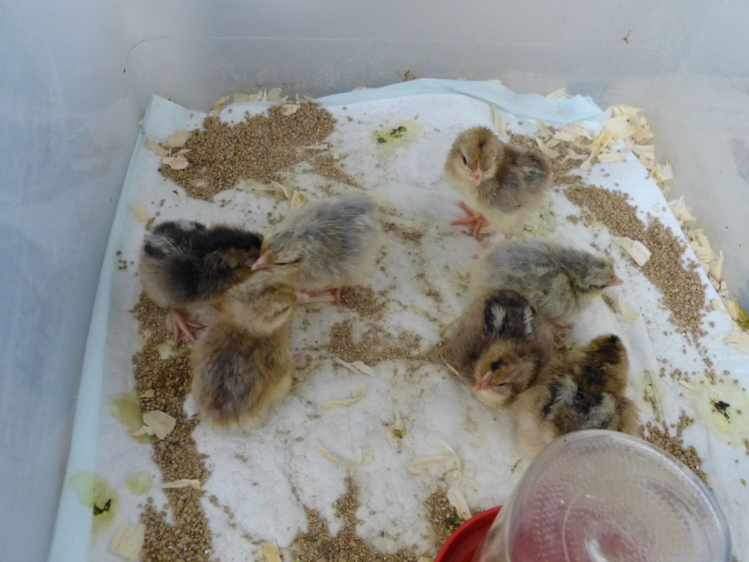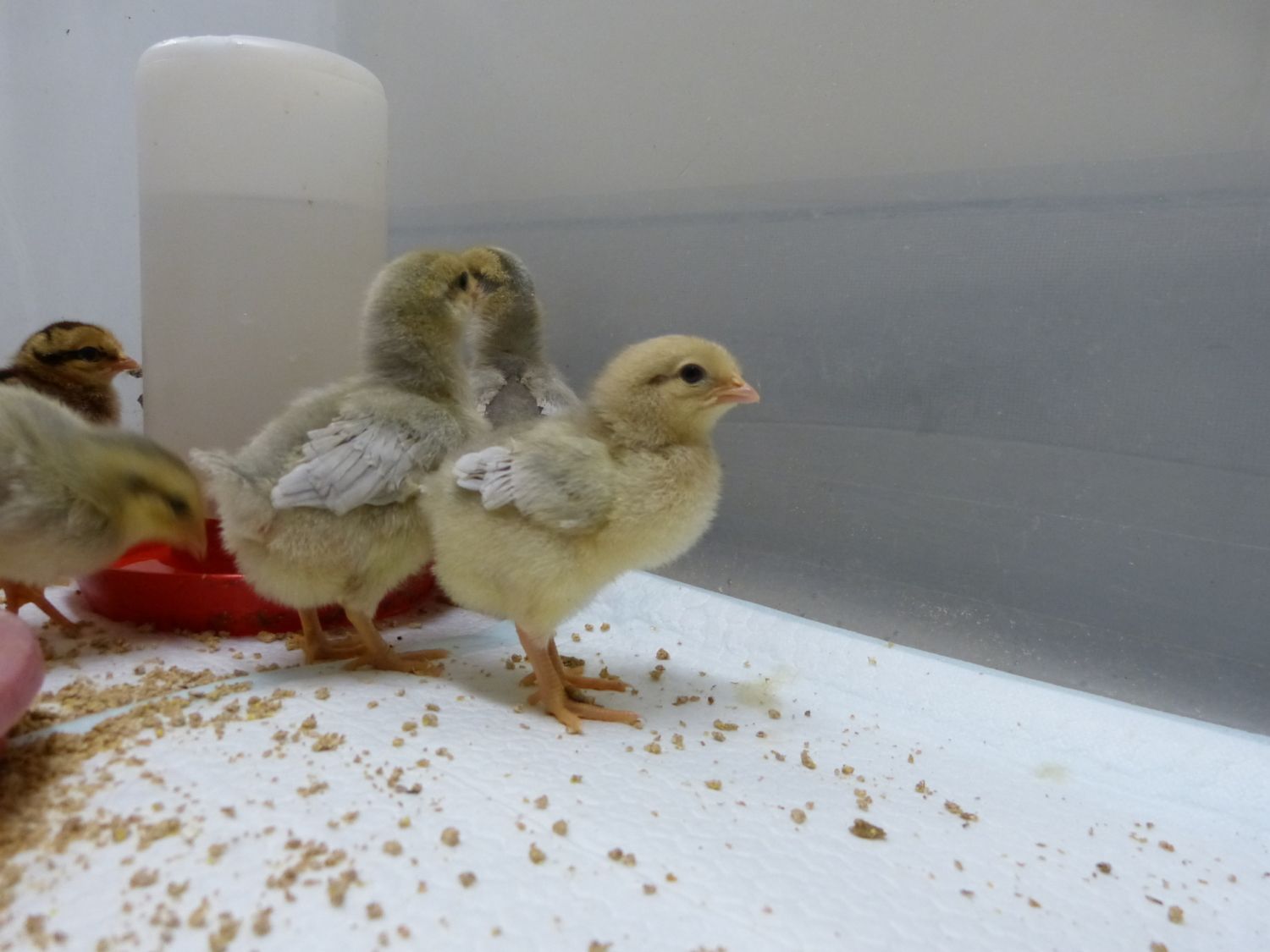 2017-04-28 - Quick Update - Another hatch day is today --- and here are the chicks starting with the three splits from the Brinsea Mini -- going upwards in age in the 'chicken room' and the garage.