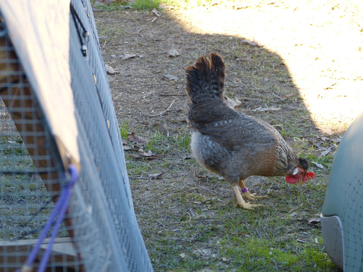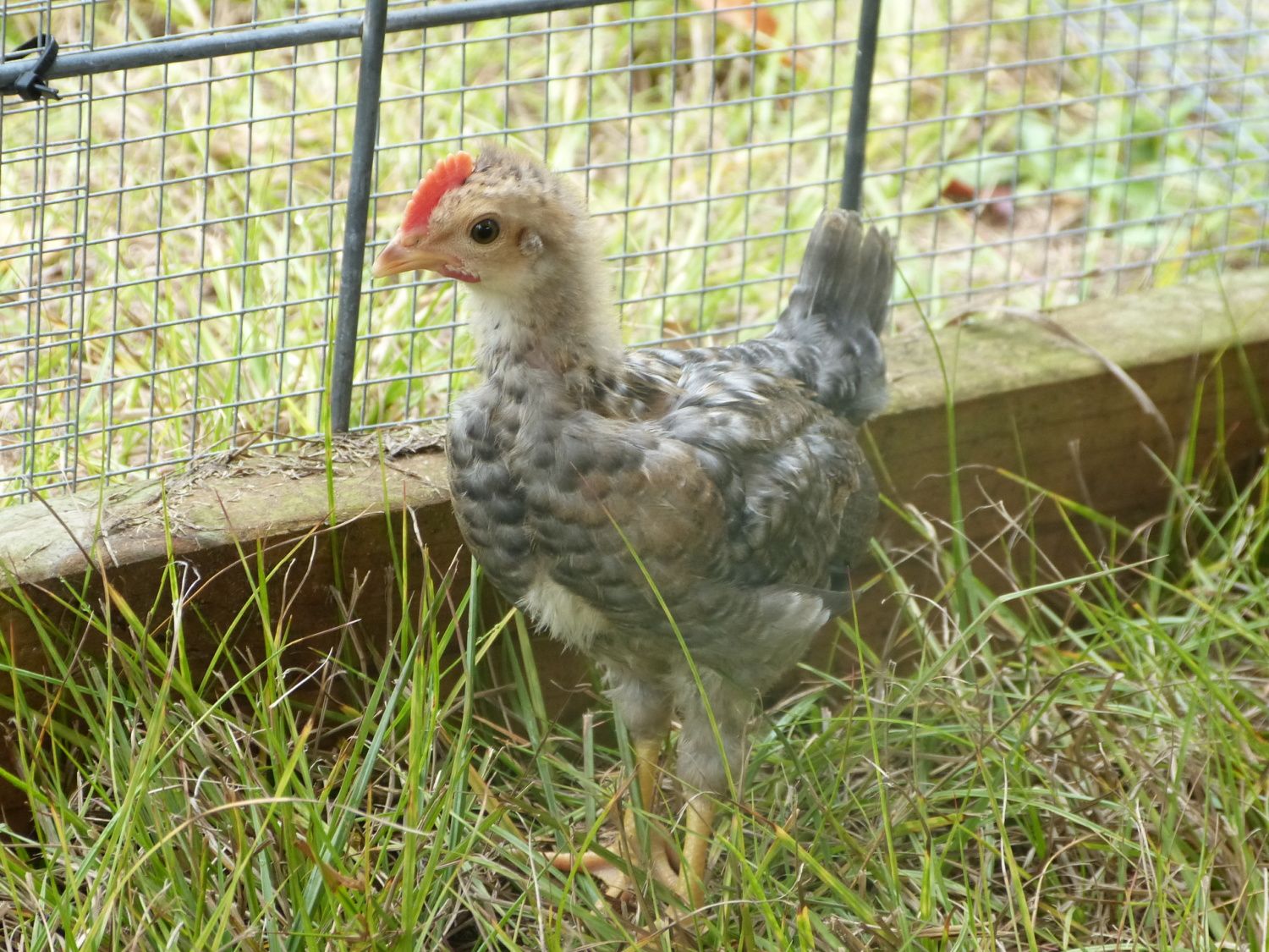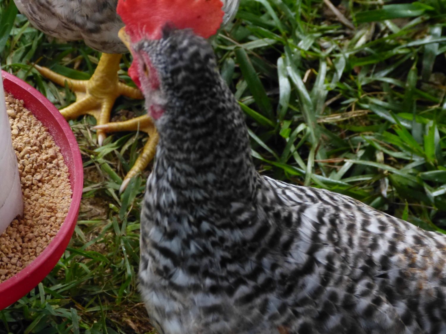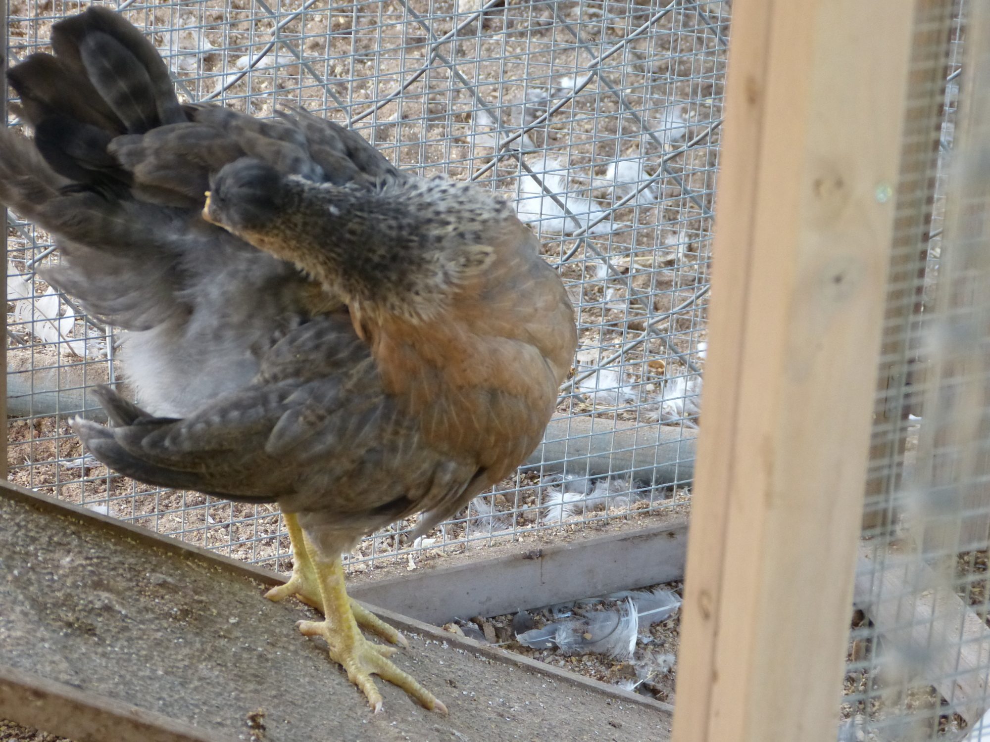 Pretty pullet from the last batch - she is 3/4 "Robin" (daughter & grand daughter of "Robin" and daughter of "Heart") "Early Girl" is growing up.