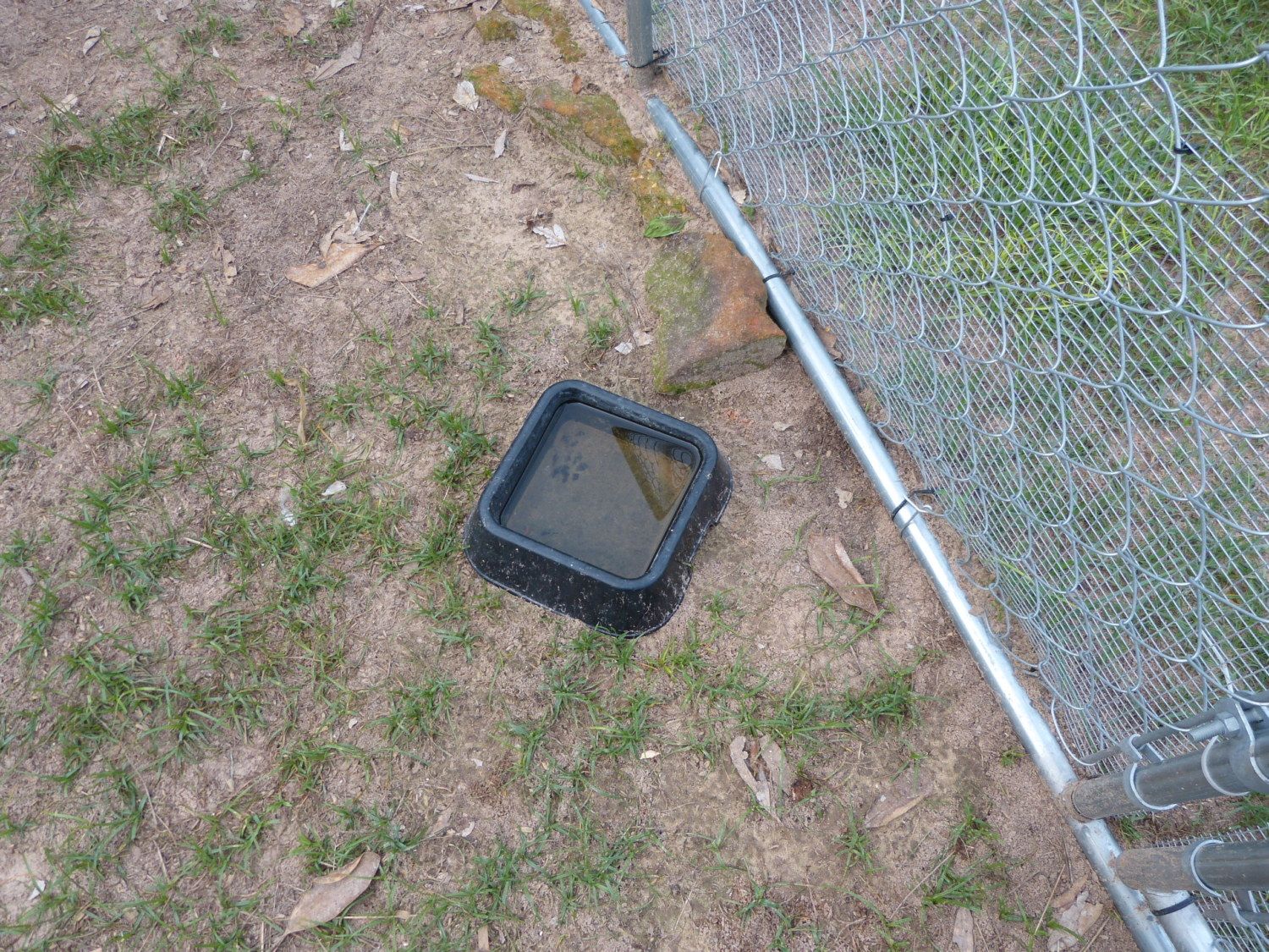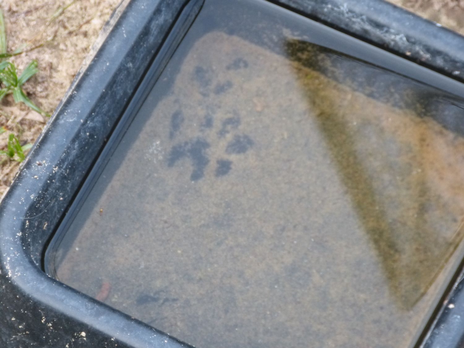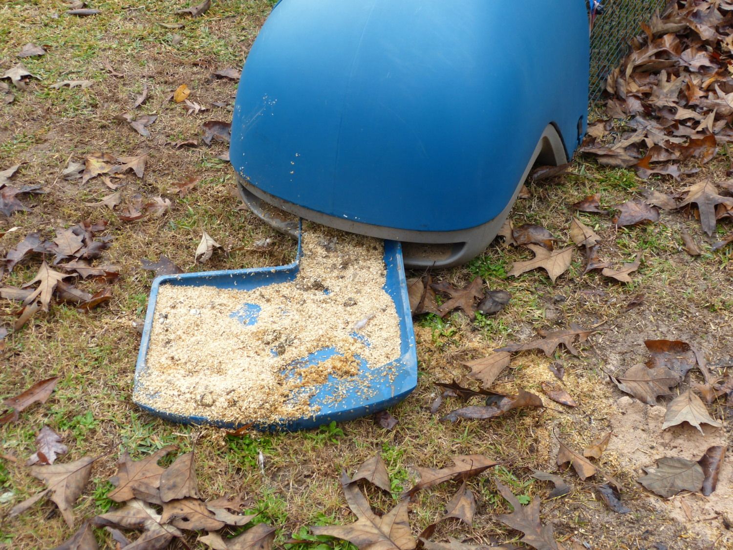 My first thought - predator, my second thought - how absent minded of me not to put the poop tray back in yesterday - then I saw the scraping in the lower right corner of the poop tray - and thought that looks more like a swipe of a paw.