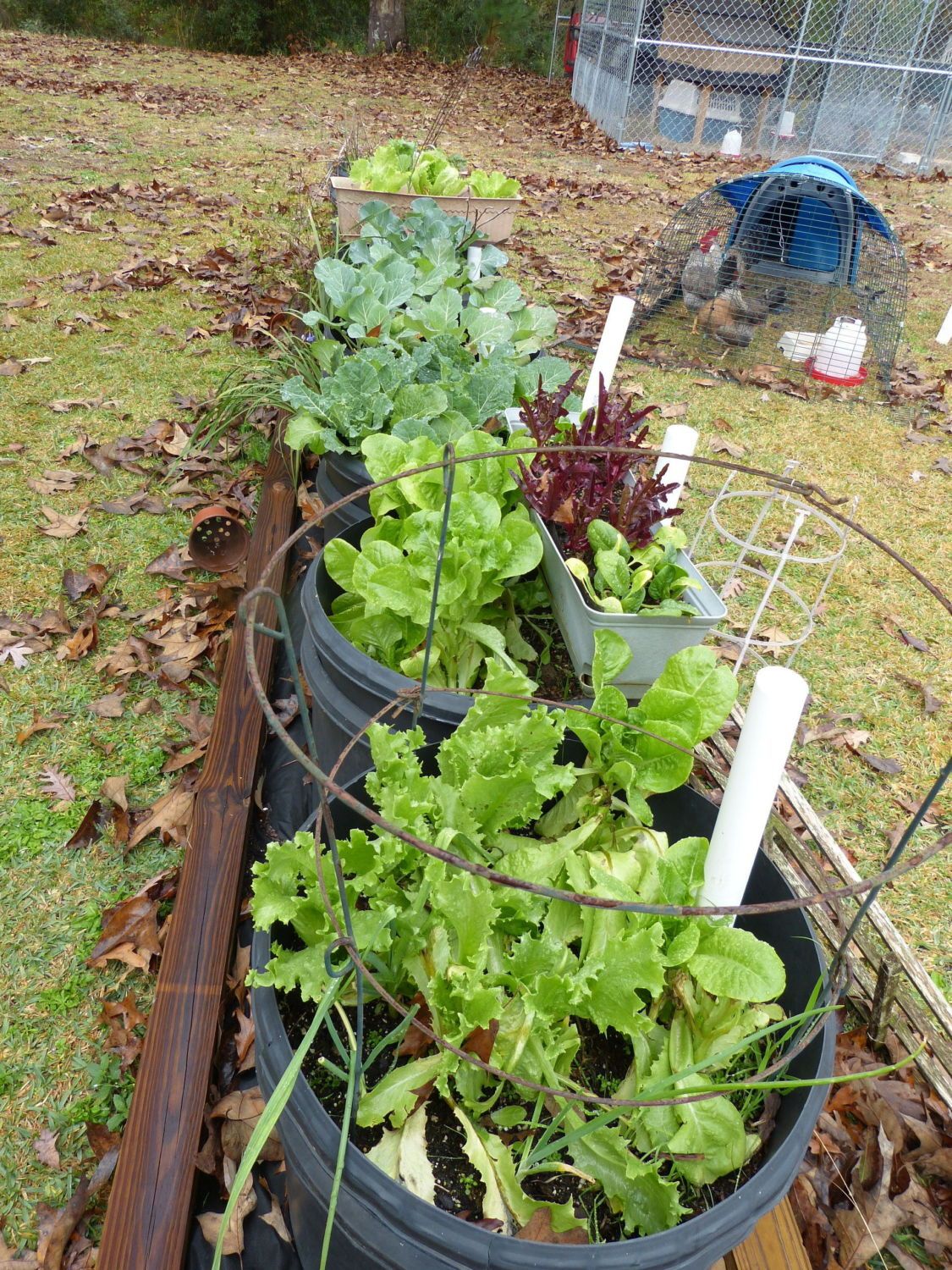 Here is the lettuce, spinach and cabbage that are thriving in these cool temperatures: