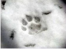 This track is larger than the canine's above. Tracks are very ephemeral. Last year - there was talk of a cougar killed on the other side of town, and I thought it was probably the same one that made this track in February, thus no longer around. -- Cougar's have a range of 50-square-miles or so -- Maybe I'm on the winter end of the range, or maybe this is the mate of the one that was killed. Rumor was that the cougar weighed 200-pounds -- It could be that the cougar got larger with every re-telling of the story. 200 pounds would be beyond the high end of weights - 150 pounds would be a very large one. http://en.wikipedia.org/wiki/Cougar Among the other names are catamount, pather and mountain lion. I hope that chicken is NOT on the menu for my local cat. Of all things I would hate to kill any animal so amazing. "Lions, and tigers and bears, Oh my!"