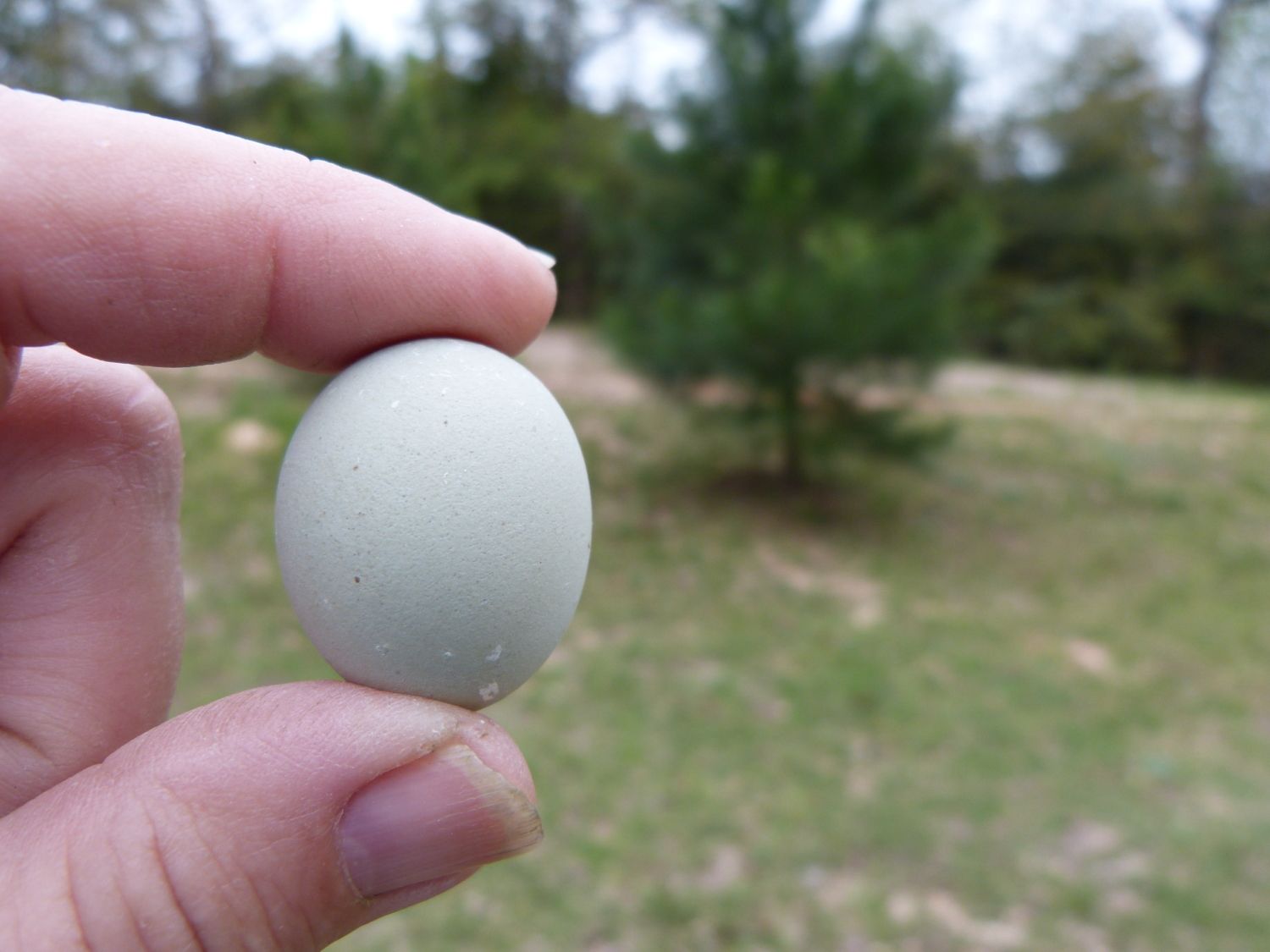 2015-04-01 - April Fool! - Ho ho ho A tiny egg that weighs .37 oz, is near OAC44 for color -- and was on the ground in the Isbar coop. Those Isbars they are always kidding around.