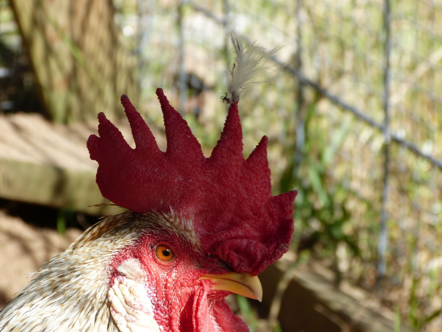 Corrigan - fully recovered - white earlobes, straight upright comb...nice crest...and how angry he looks with those feathers making what appears to be jutting eyebrows.