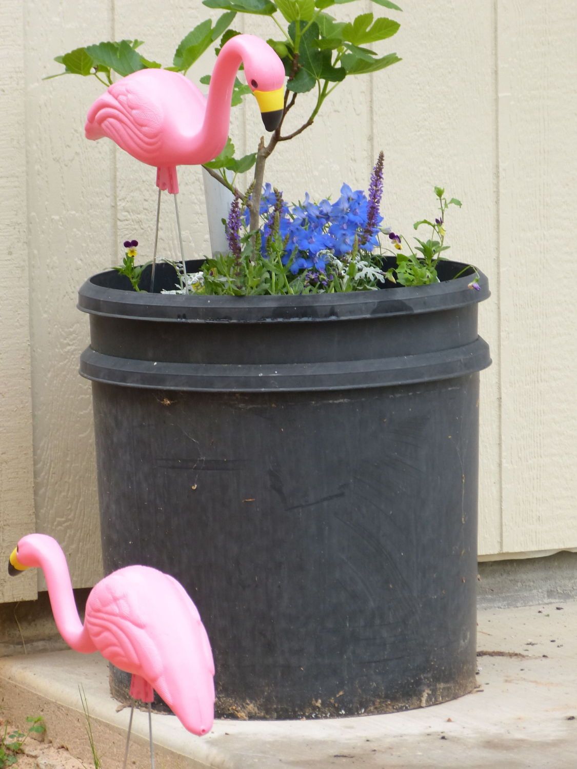Behind the container garden- the blue Eglu - and the inhabitants - safe and sound.