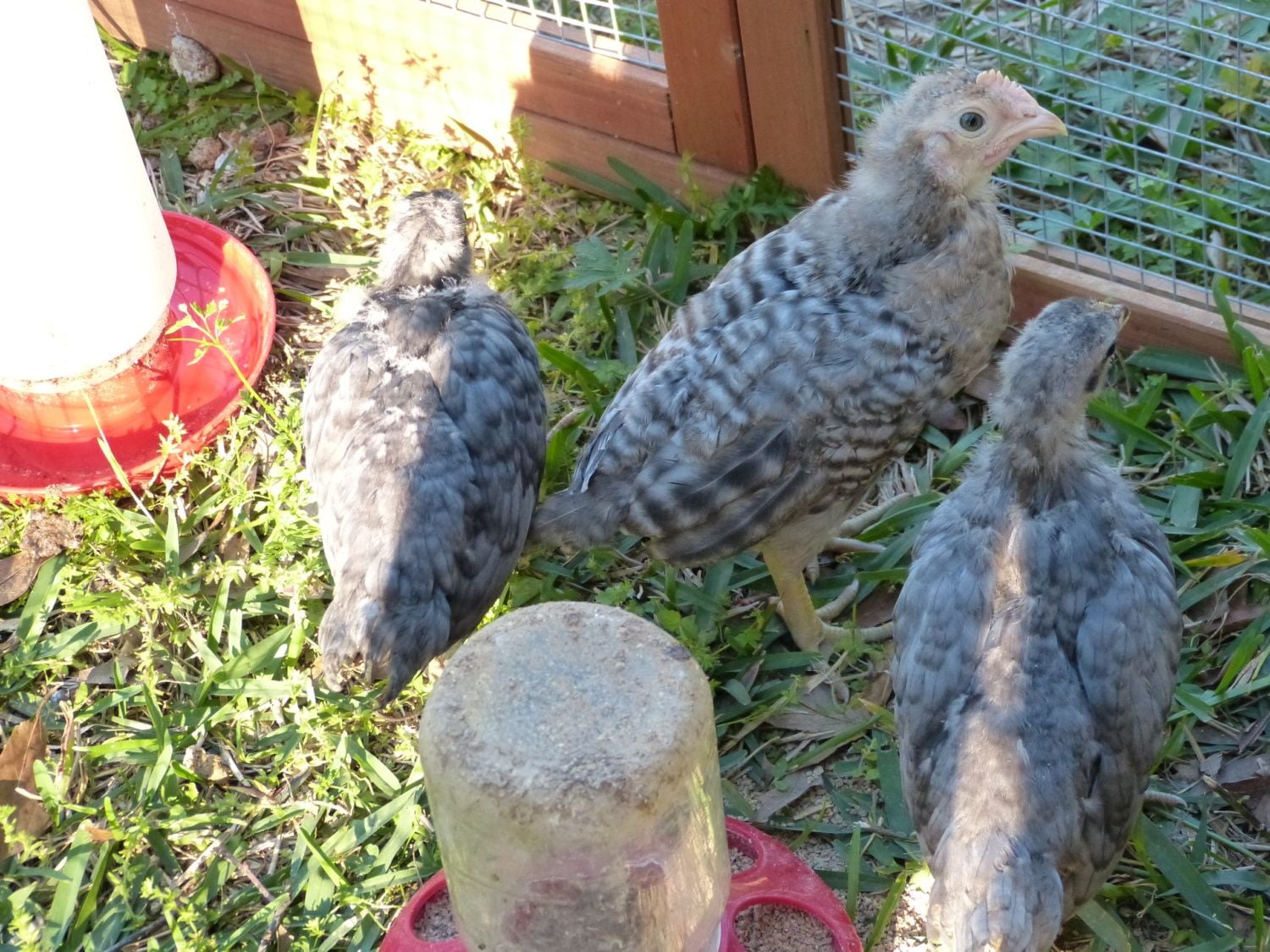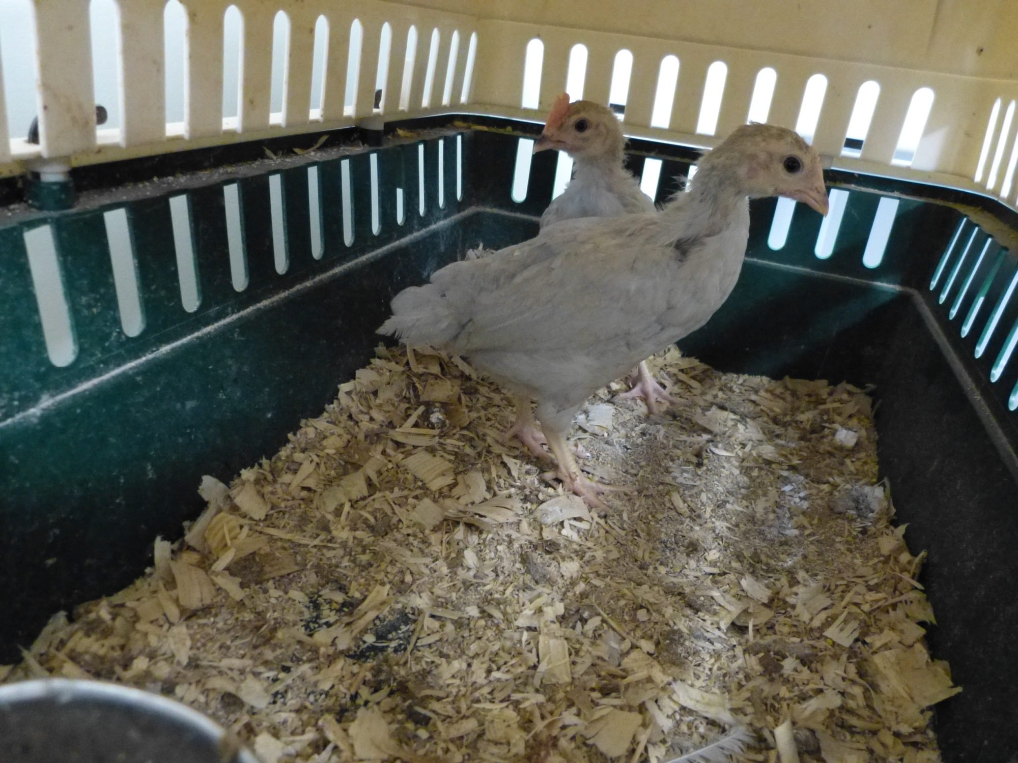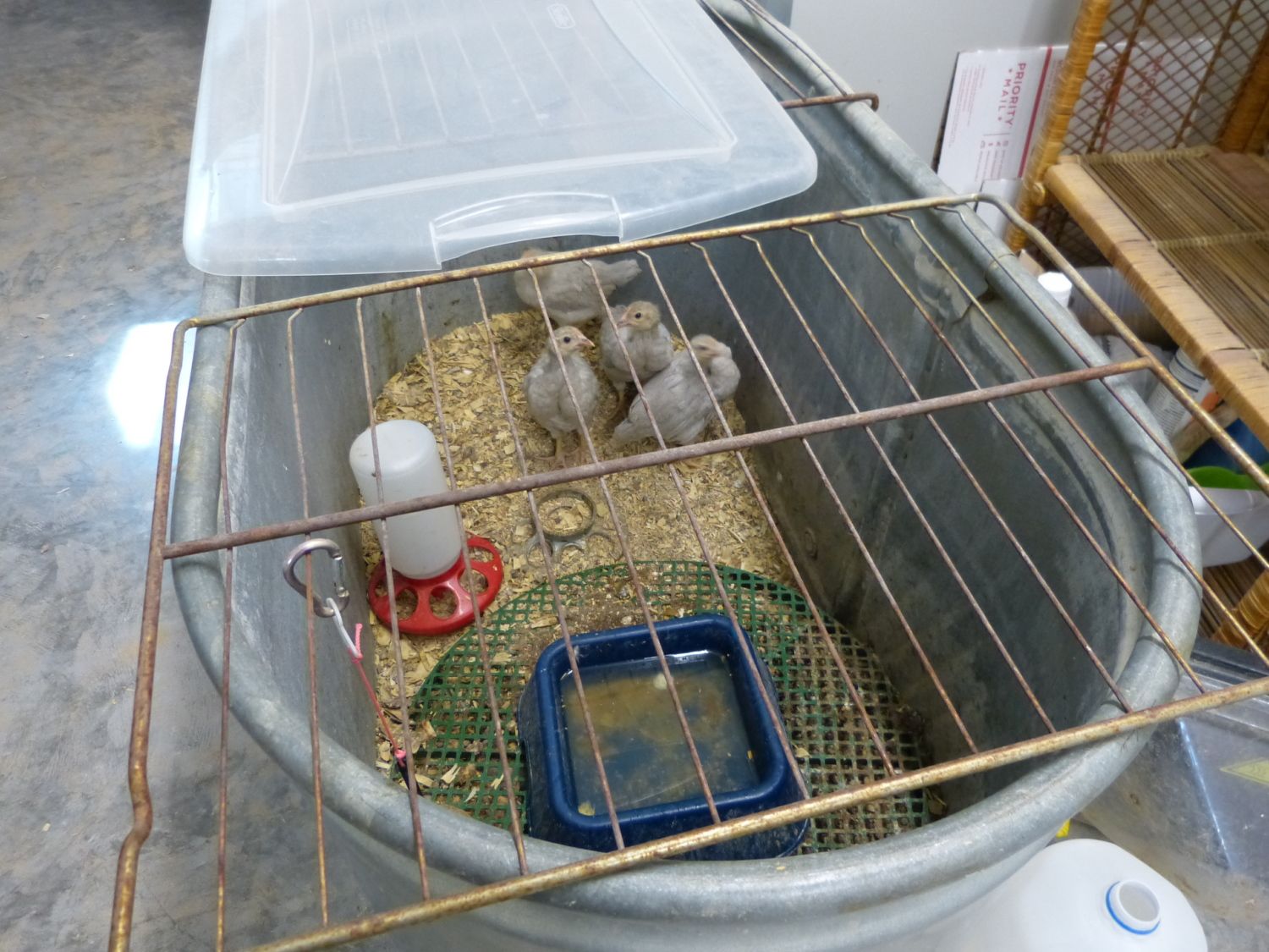 The 3 project grow outs - are doing fine -- but they trashed the 'brooder' plastic tub about 15 minutes after I completely emptied it, scrubbed the walls, etc. They fill the water with shavings, and they even spill the water...then the shavings are wet. not healthy.
