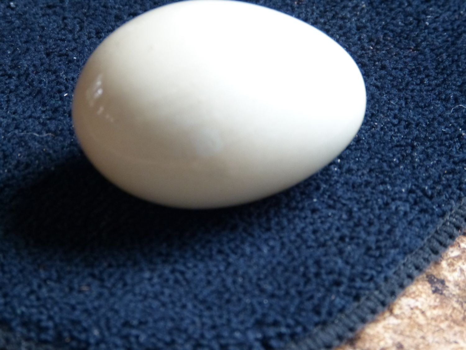 2017-02-21 - Life Saver? - This egg may just have saved 'Olga's' life. Olga is sweet, and curious. Once upon a time she was a good layer. 'Olga' is the Isbar that produced the green eggs with speckles. For over a year 'Olga' hasn't produced an egg. My thought was that 'Olga' was an internal layer. Today in the nest box, I found this: