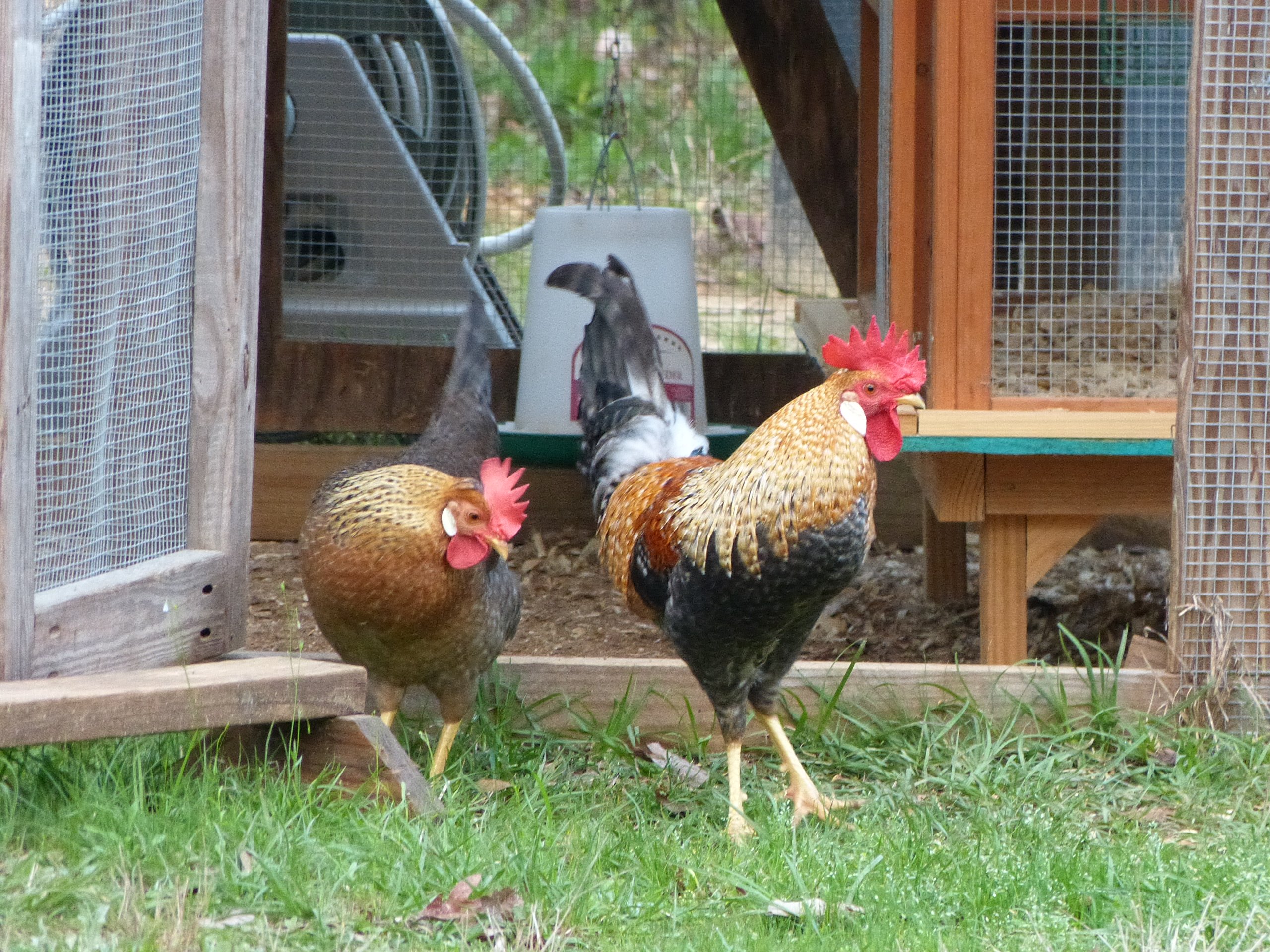 2015-04-15 - Big kids now! - Here is a shot today of the two cockerels. - They are just so dang cute! -- Tomorrow is 4-weeks since hatch. They are getting crests. I will really miss them when they are moved to the out doors.