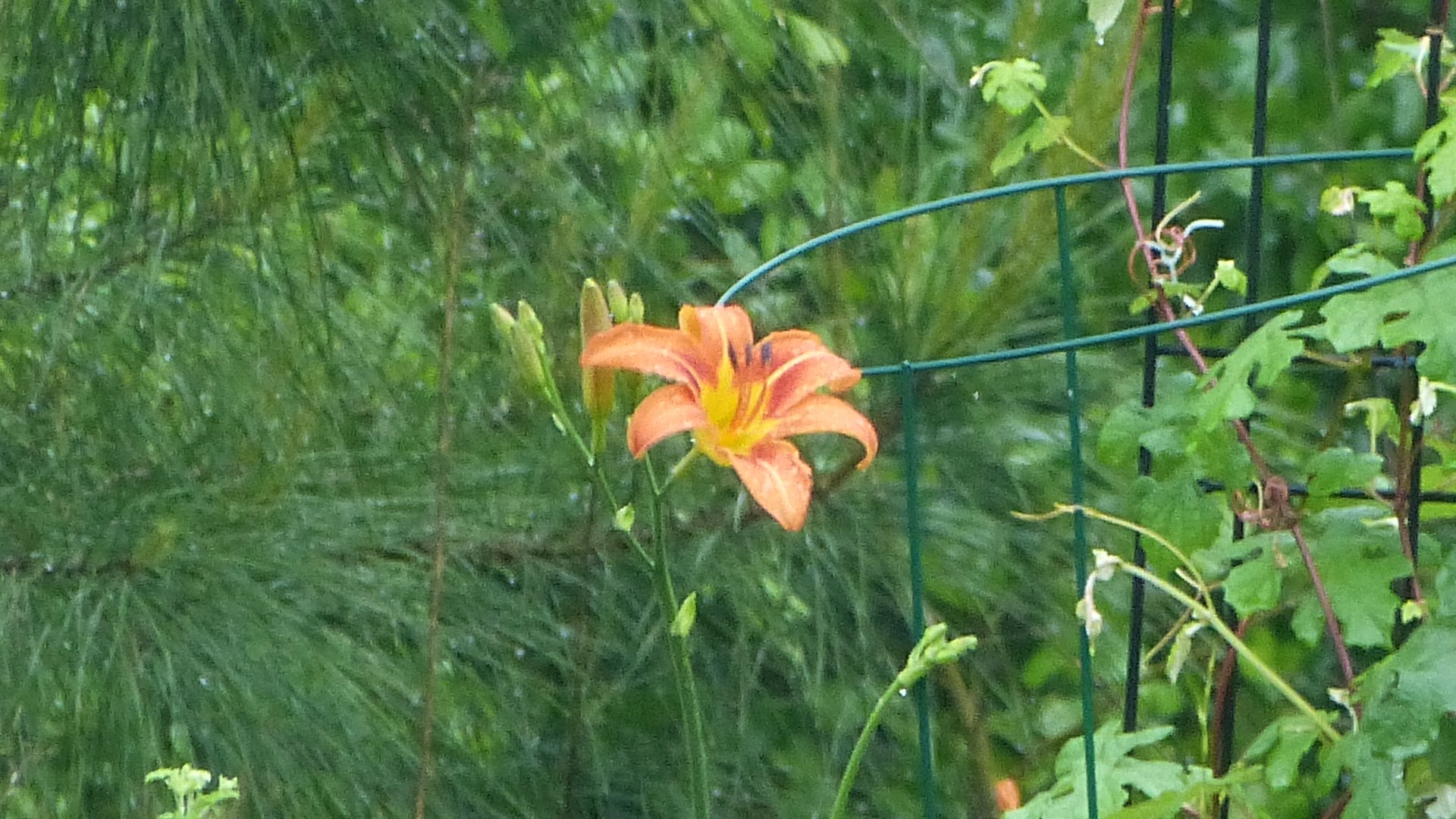 This was shot from the back door with long zoom telephoto lens during significant rain -- I'm very surprised it was able to focus.