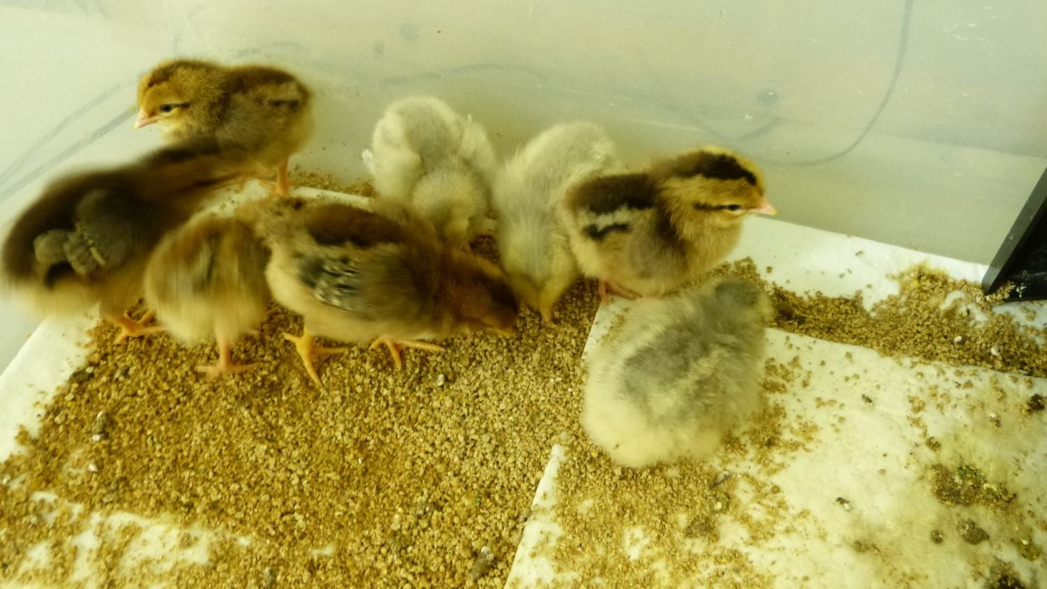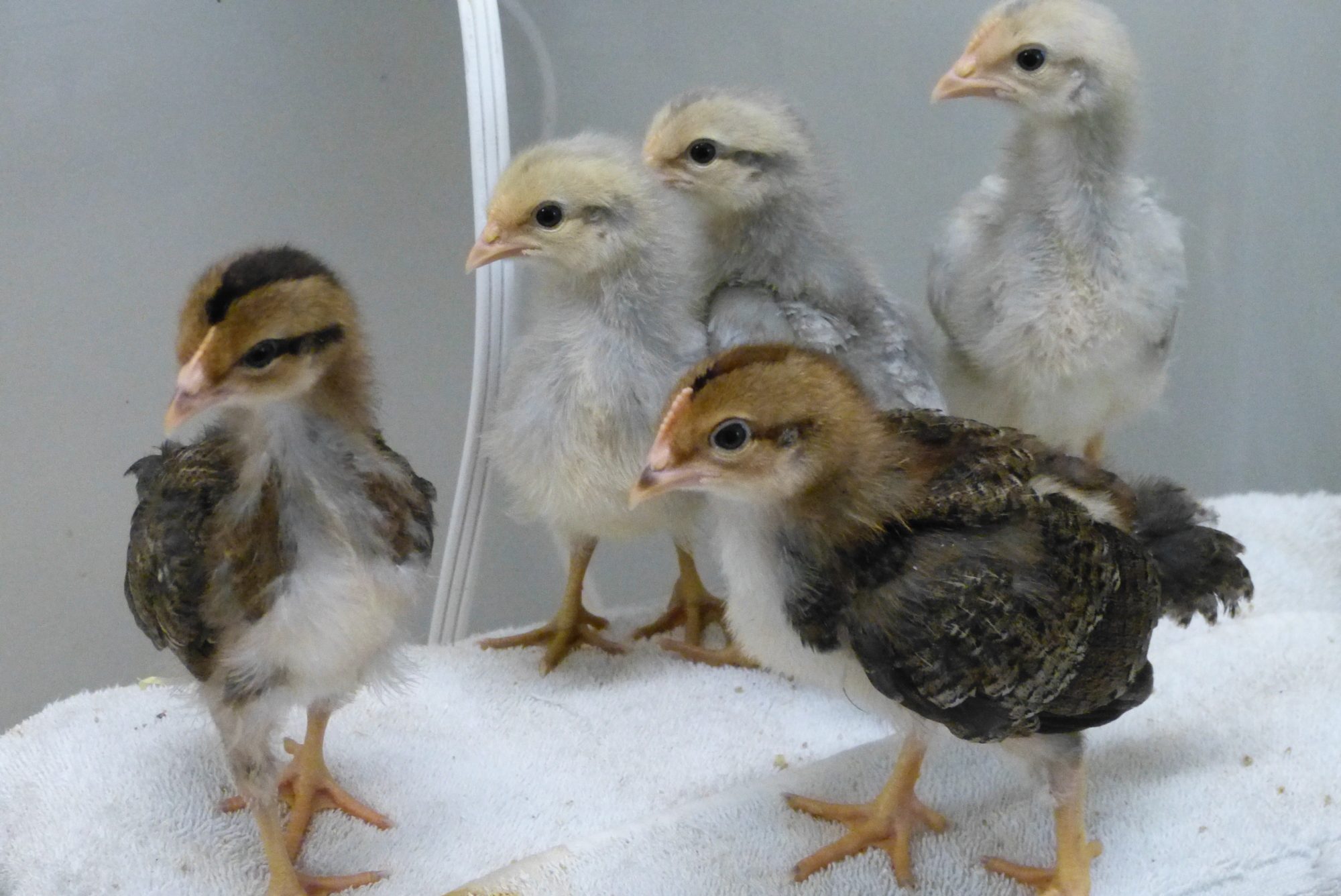 2017-02-03 - Project Progress - On Jan 31st, 6 of 7 eggs hatched. As per Punnett's square the genetics were spot on for lavender. I got 3 lavender chicks and 3 brown chicks.