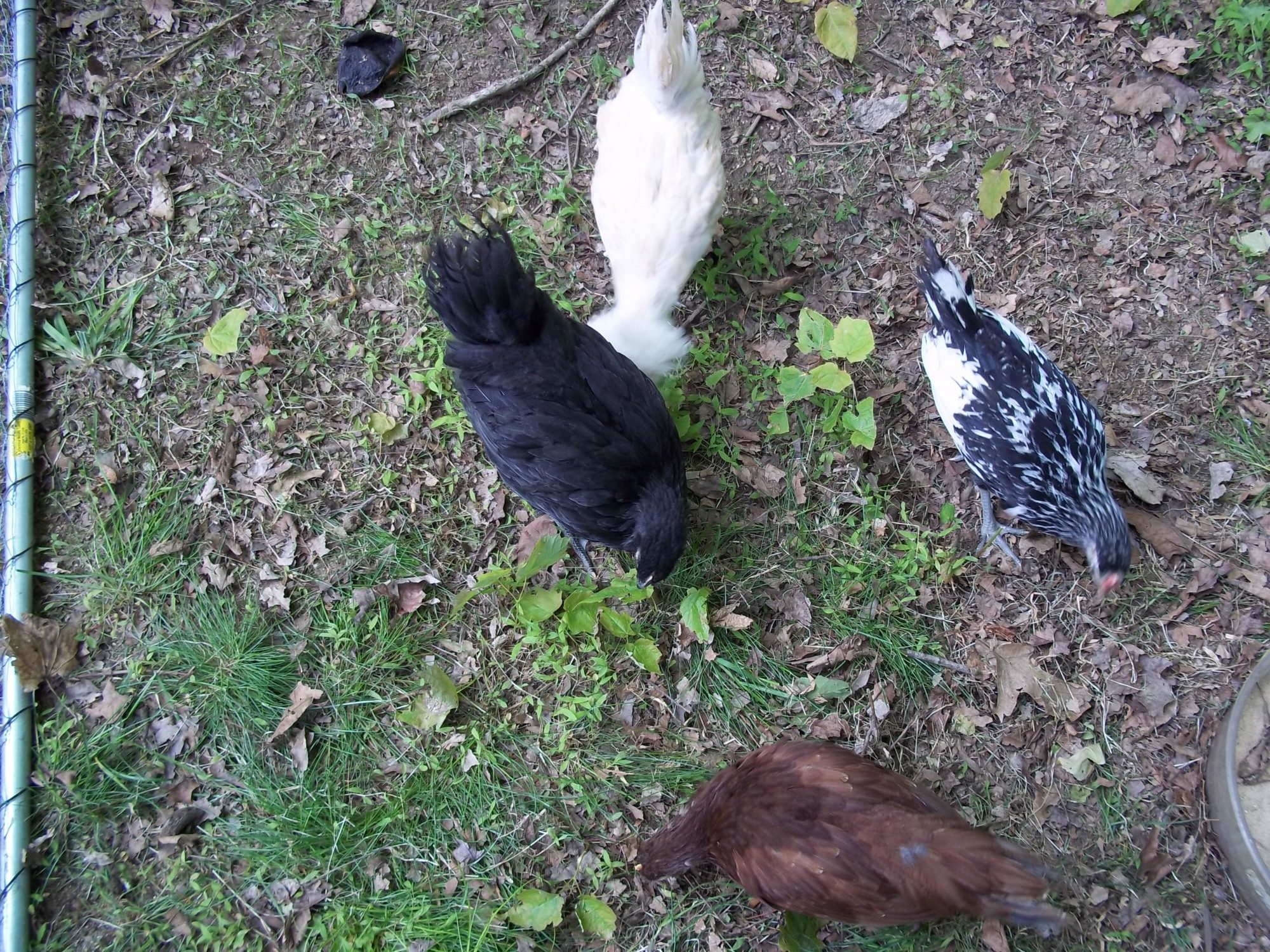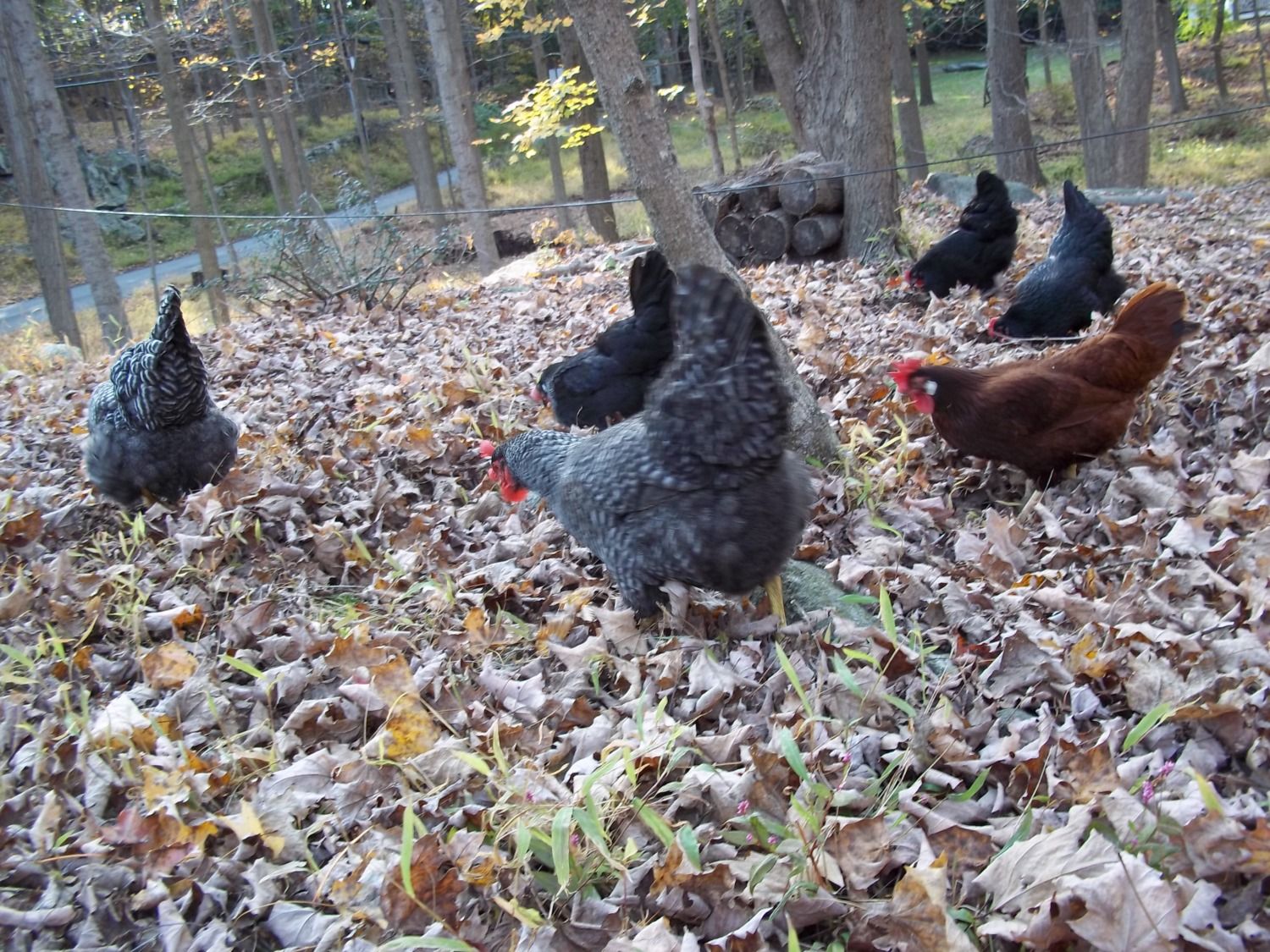Below, my 7 chickens at 10 months old - I added 5 more after giving away the roosters.