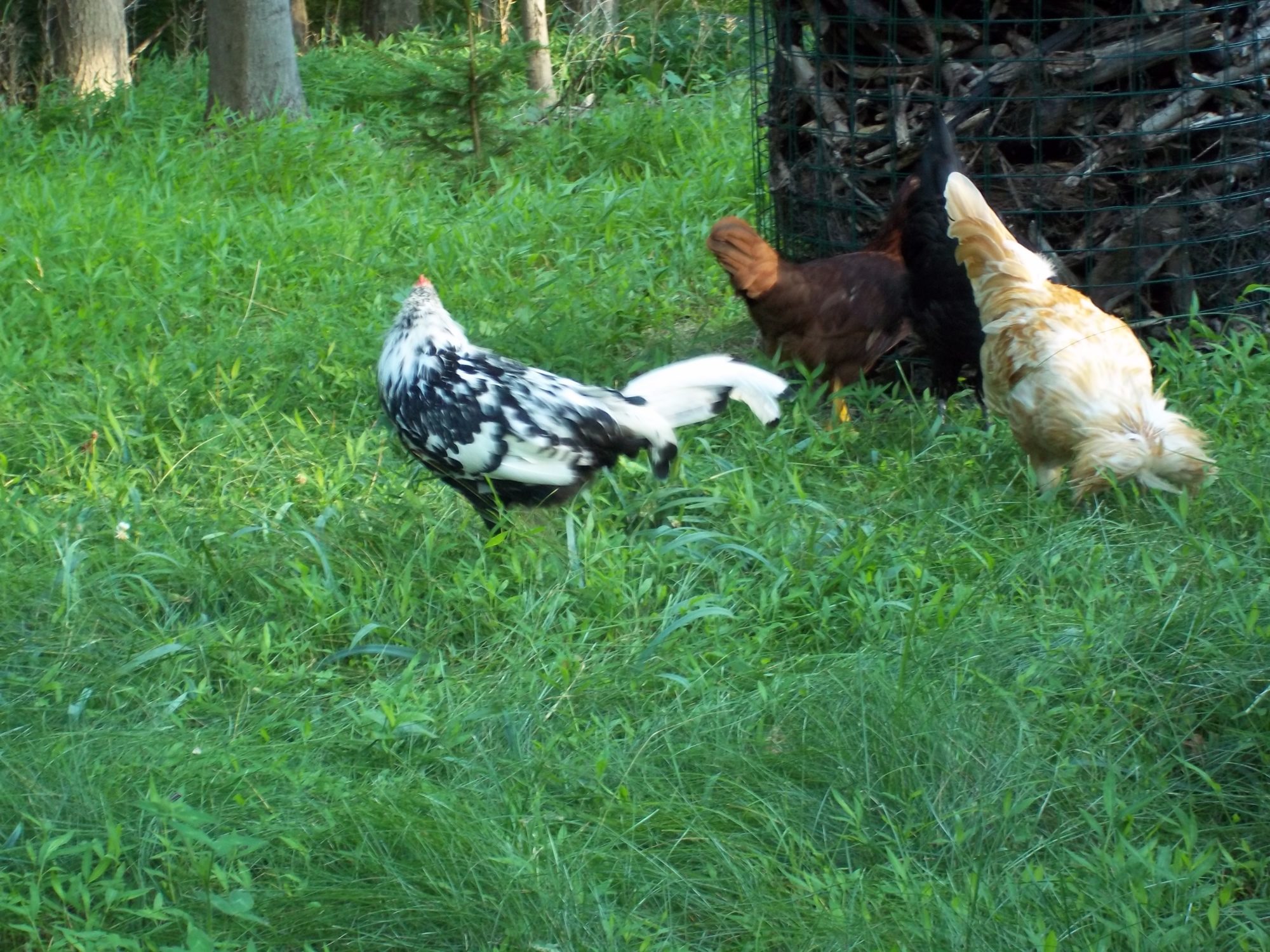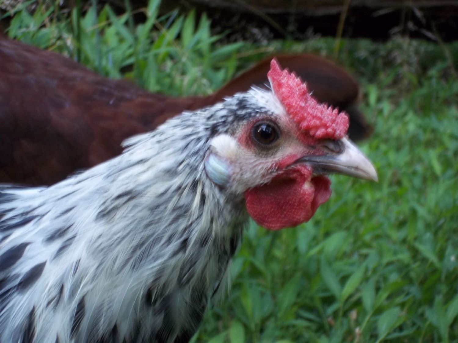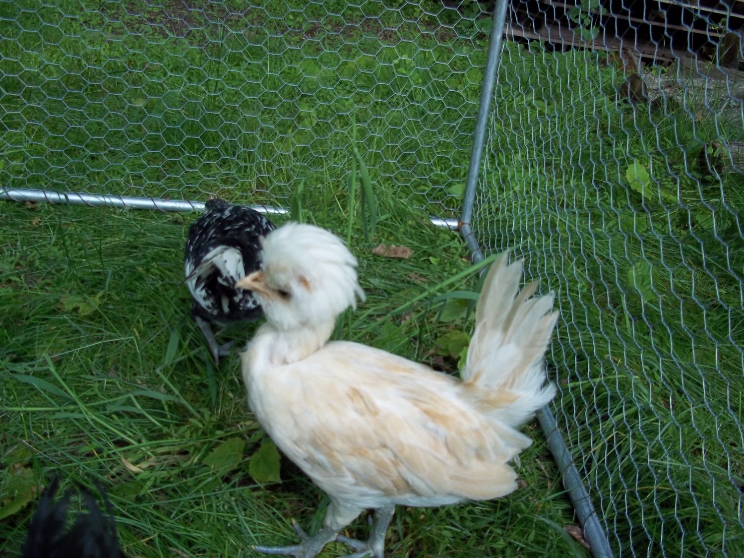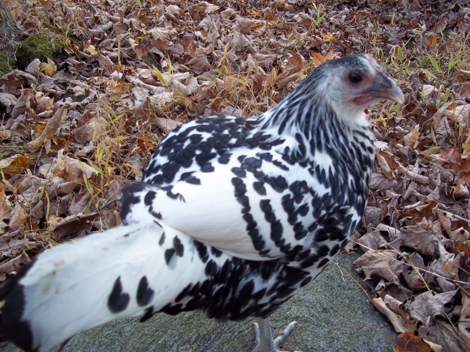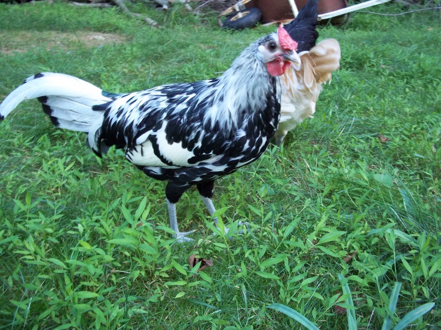 Dottie and Anishka turned out to be roosters. I realized they were roosters when they were about 3 months old. Both were given to an orchard farm where there are about 20 other chickens. Below are my last pictures of Dottie, a Silver Speckled Hamburg and Anishka, a Buff Laced Polish.