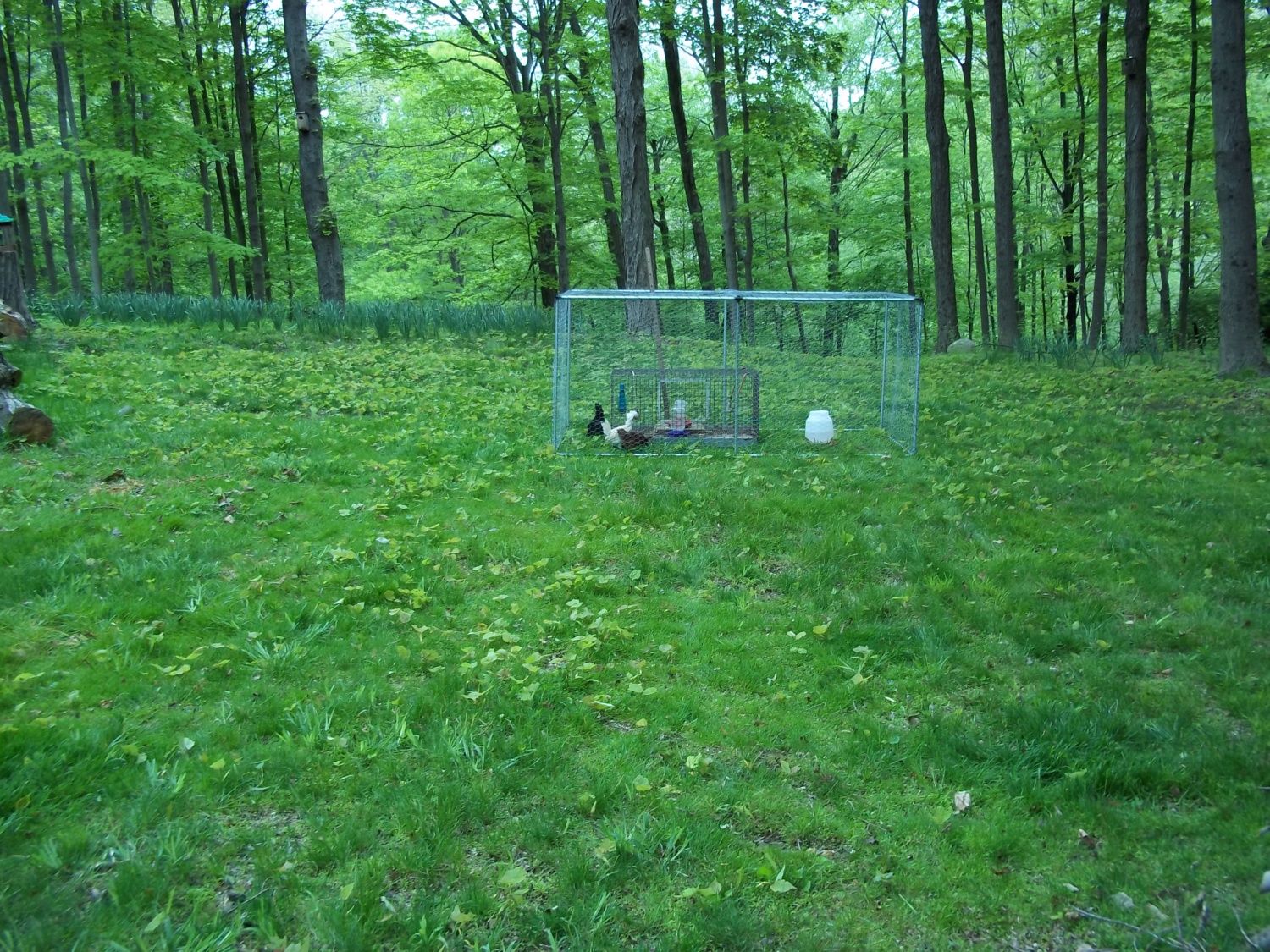 Right now, there is no bottom on the run, but there will be soon because we have hawks, coyotes, fox, owls and raccoons. There will also be a door that will connect it to the tractor. No wheels are needed for the run since it is so light weight.