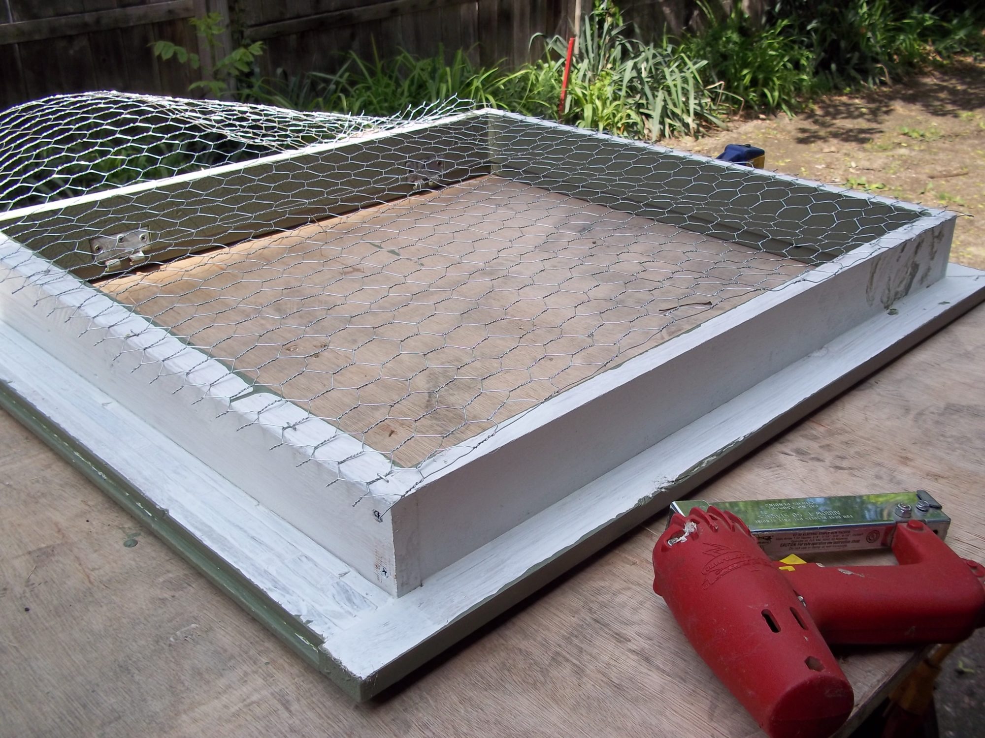 After posting this picture, someone on backyardchickens.com asked me if chicken wire would be enough to keep out the raccoons. I did a little research and found that it would be better to use a welded wire so installed hardware cloth over the chicken wire. There are pics of this later.
