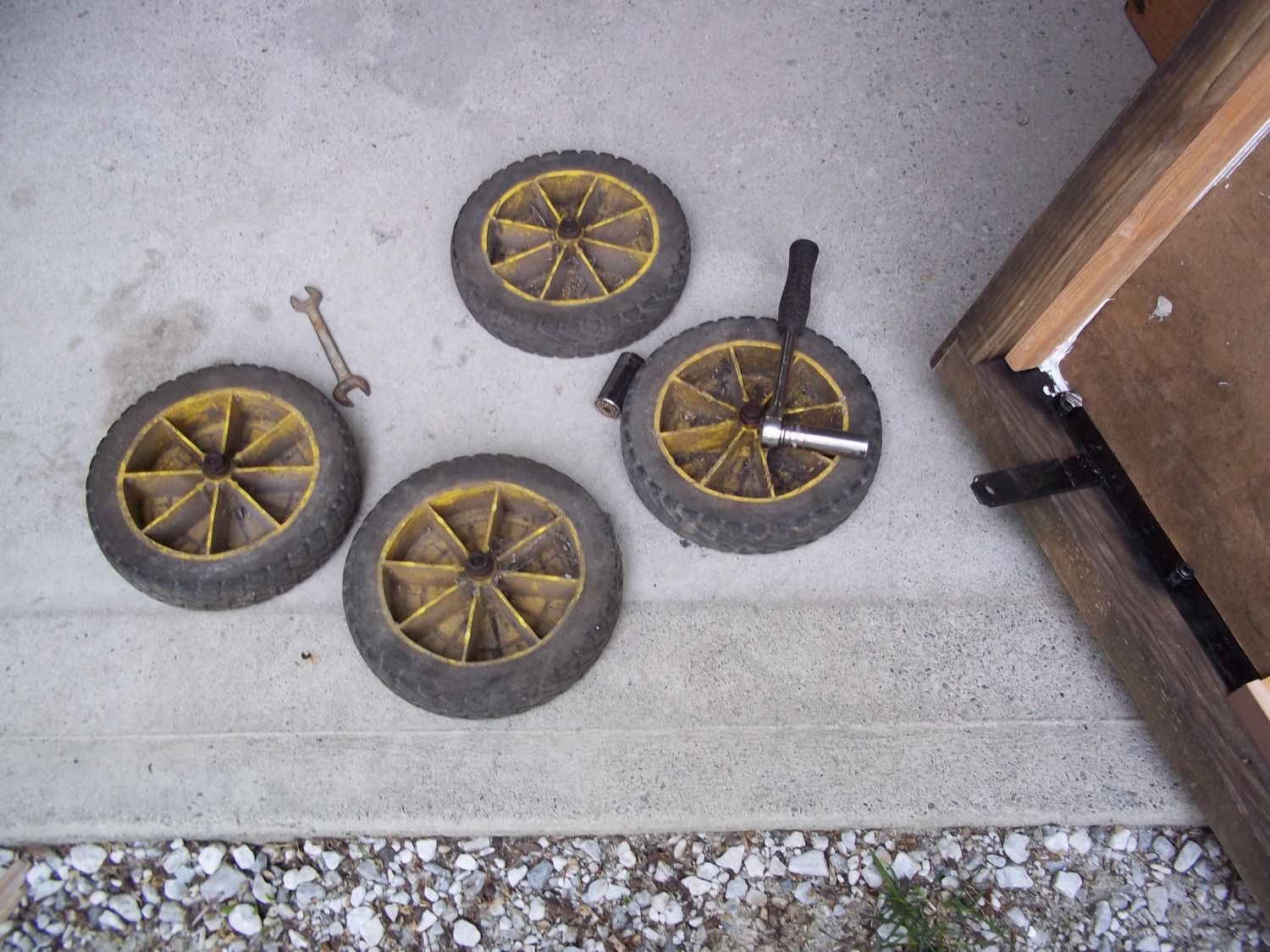 Coop assembly day: Here's the underside of the bottom of the tractor showing the bracket where a wheel will be attached.