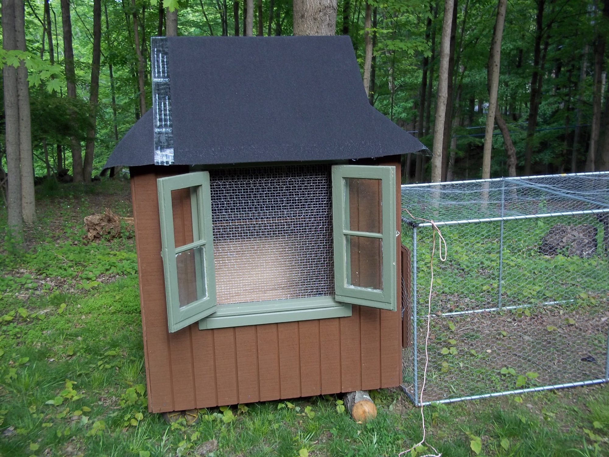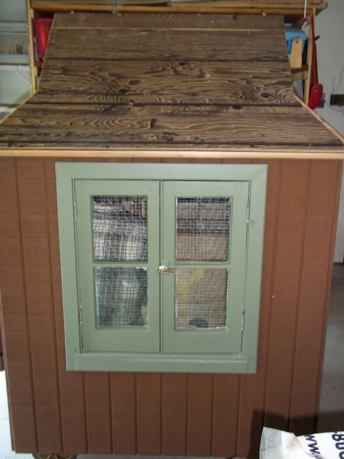 We stapled chicken wire to the back of the window frame so when the window is open the chickens can't fly out.
