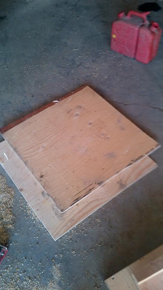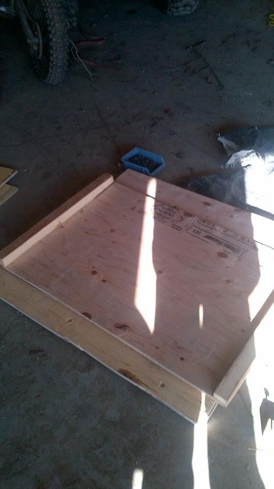 then to 2 of the 2'x3' sheets of plywood i made i put 2 of the 1.5" boards flush with each end of the sheets.