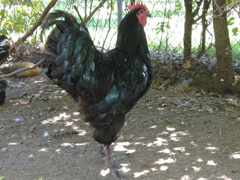 Some lines of birds are more frequent in being broody. My particular birds have gone broody six times each this year alone. The males are sweet, relaxed and gentle. Green sheen on males and females is desirable with purple sheen considered less desirable than green. Eyes should be dark, bordering on black. Face and wattles should be red with a medium-sized comb. This breed has done will in 100*F temperatures as well as sub-zero temperatures in the winter. Laying in high temperatures should not be expected. Eggs vary from light brown to dark brown and desirable eggs have a "plum" coloration to the brown.