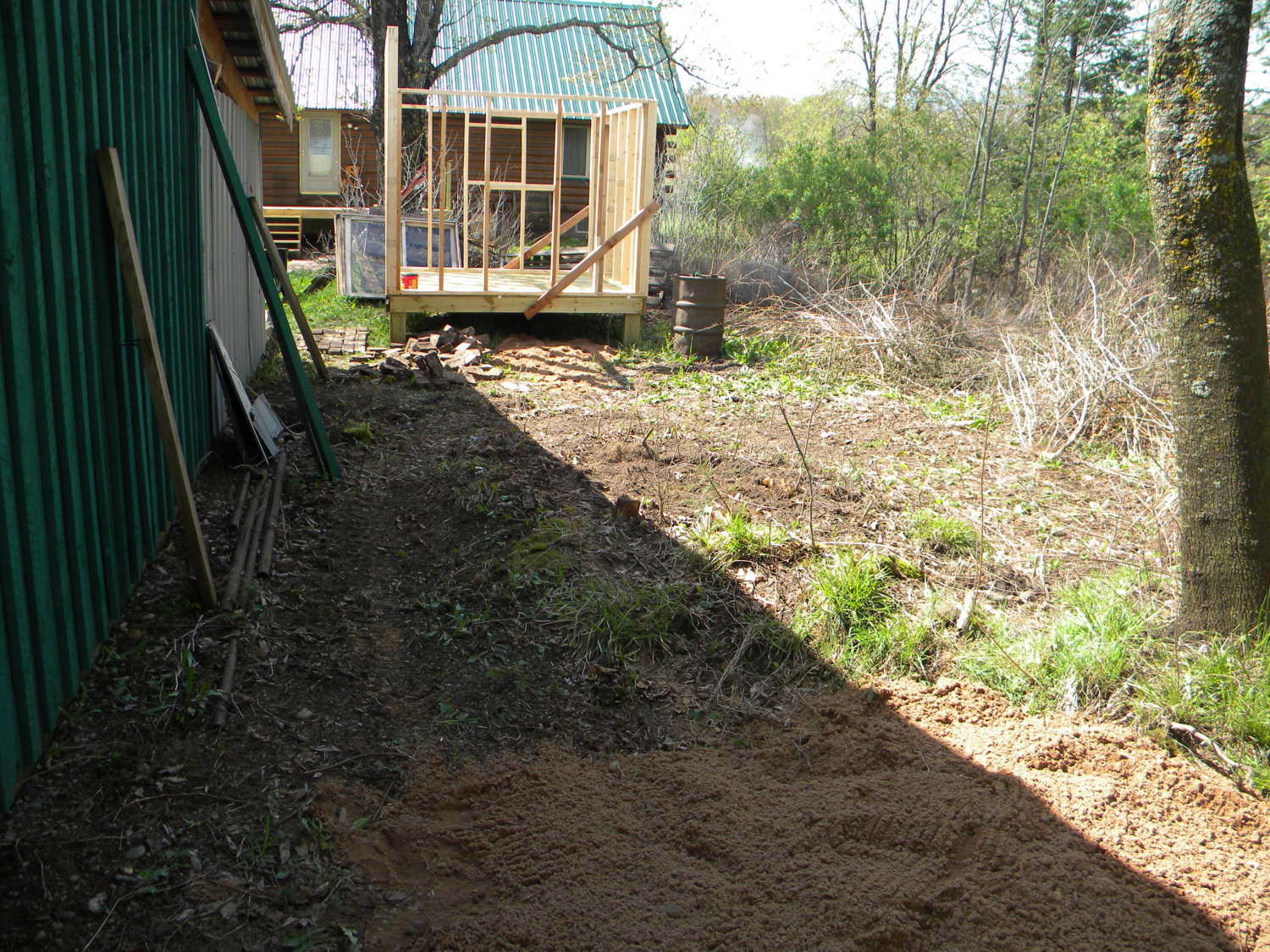 We also decided to try and use left over materials we had laying around the house. My dad was not so fond of this idea because he did not want any eyesores on our property. The first major project was clearing an area for the coop. The area we decided to use had been over run by raspberry brush and it was a good reason to clean the area up.