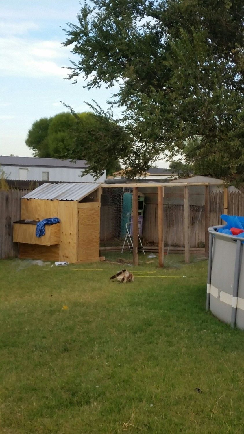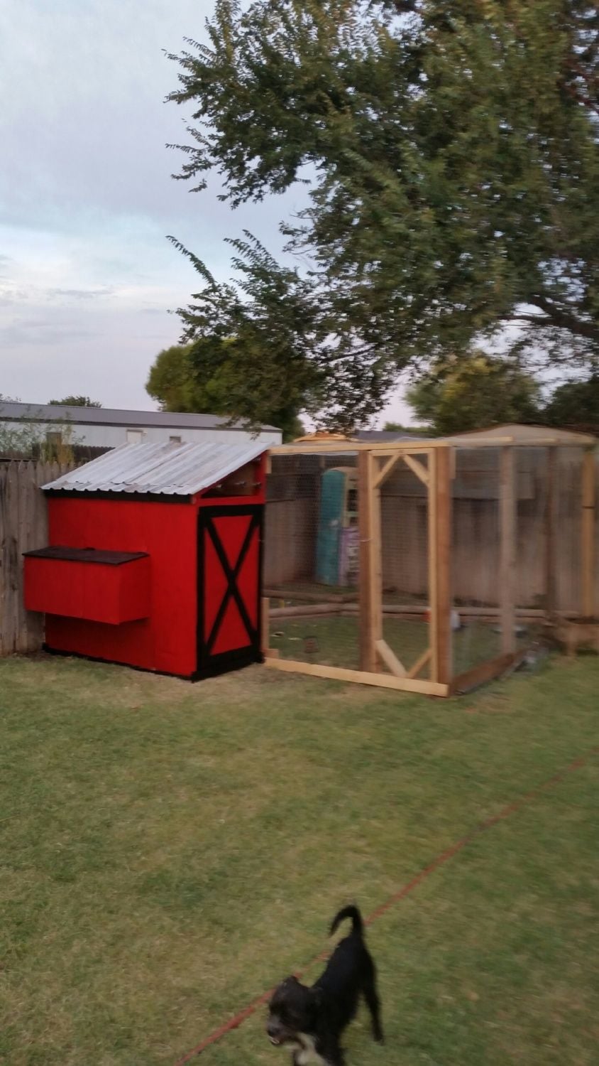 My wife and I decided to build a coop. Look at a lot of the designs and built this one. Currently we have 4 hens. 3 cochins and one we don't know what it is. It has been fun and entertaining. We hope to have 8 hens. This coop measure 6x4. It is 6 foot tall. The run is 12x12 enclosed. Really didn't have any plans drawn up. Just knew in my head what I wanted and started building.