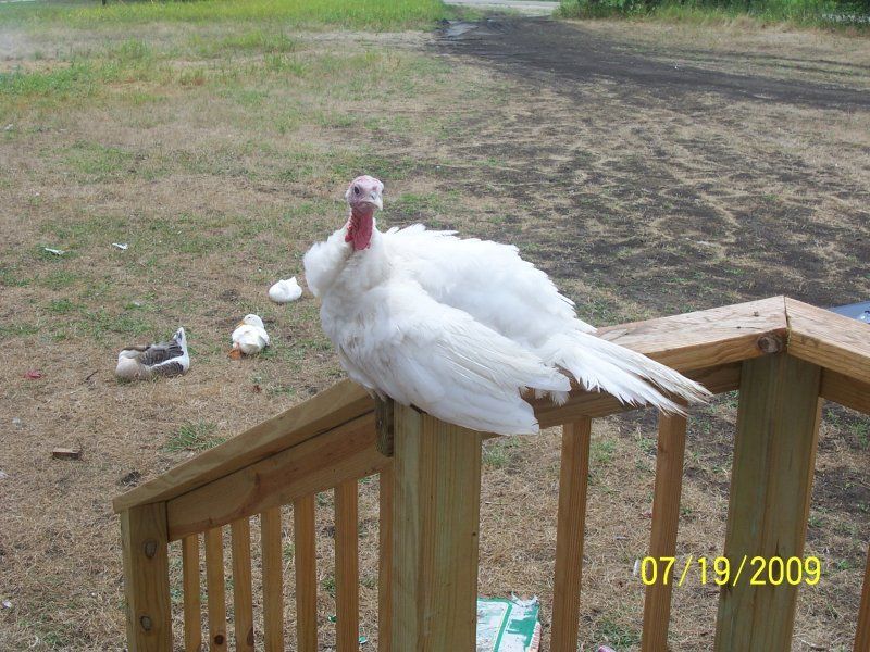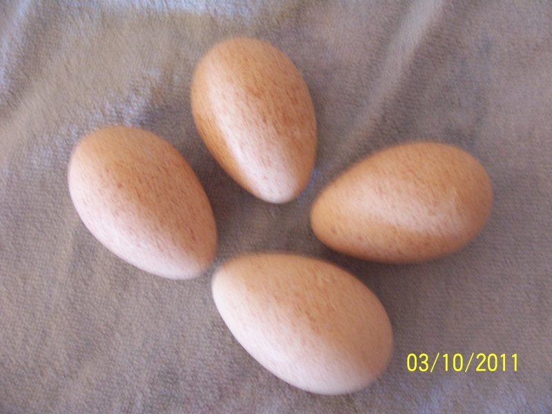 The Tom's weigh in at about 20 pounds and the Hen's weigh in at about 12 pounds. They are a slow growing bird, with a wide breast that makes them a wonderful table bird. They can fly and like to roost in trees or on the roof of your house. They breed naturally, are very calm and friendly. The hen's can produce about 60 to 80 eggs per year, they will go broody and are excellent mother's.