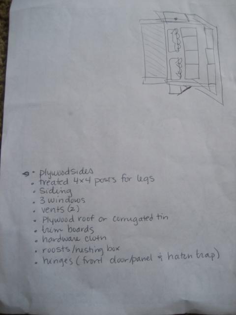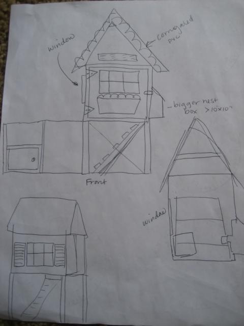 Since our chick couldn't live in a laundry basket forever, it was time to think about some more permanent housing. Of course BYC was the inspiration fueling my new chick obsession. I poured over the adorable coops and knew I wanted a cottage style home. I pretty much copied the Hawaiian Cottage coop and drew pictures for my husband.