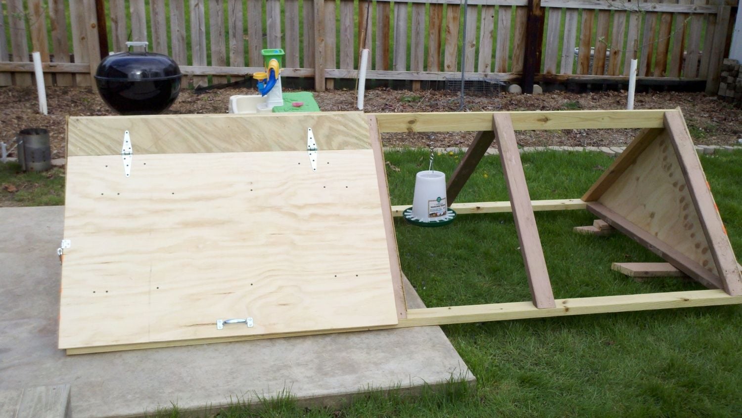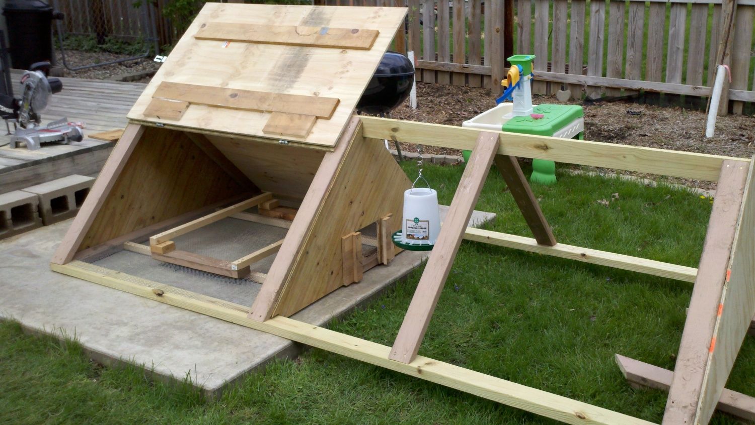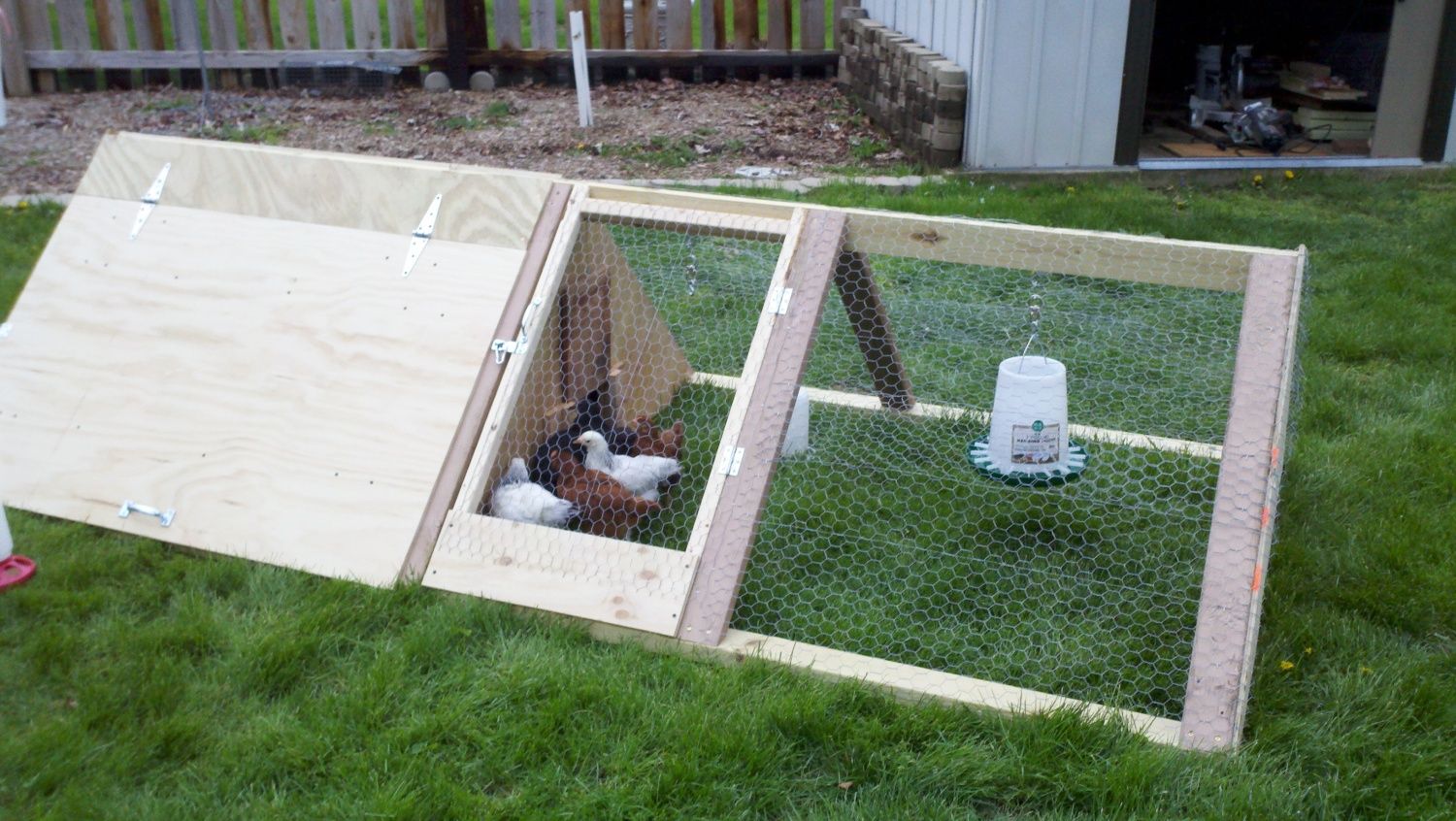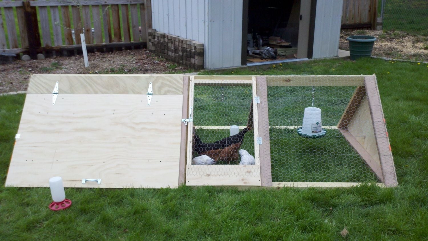 Hardware cloth in the bunk house for the summer so waste just drops through to the yard - a sheet of plywood will be the floor in winter. Still have yet to stain it and add wheels but the ladies seem happy.