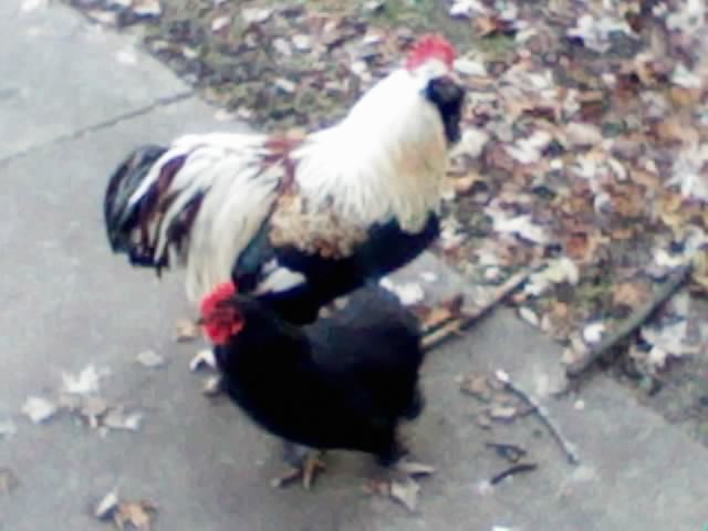 Mr Fluffers, the faverolle, and Oscar, the cochin. Two roos with such difference in size!