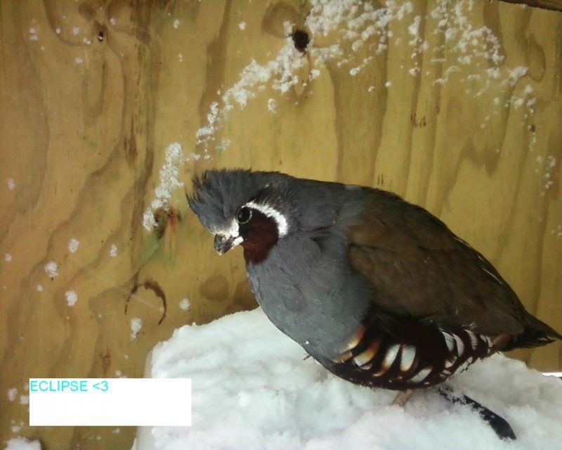 Breed Details: VERY HARD TO RAISE! Not for the beginner quail raiser! As chicks, they will peck toes and it is hard to get them to start eating as chicks. When they are hatched, cut up mealworms into small pieces and feed for the fist few days. They will need a 28% Protien feed as chick, and Mazuri Gamebird starter and breeder is best for them at all ages. As young adults place them in a wire pen and feed Mazuri Gamebird Maintenese feed. |