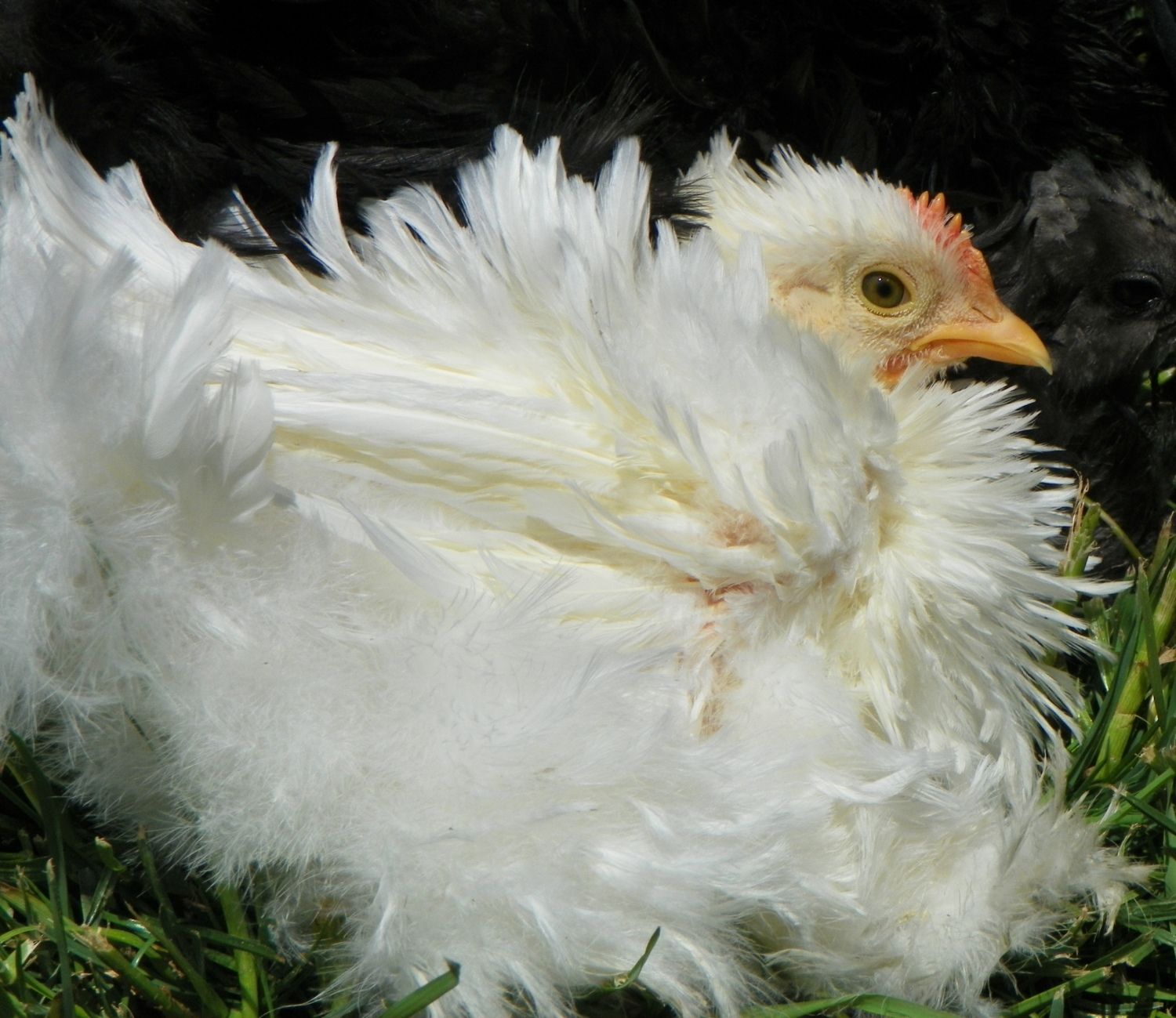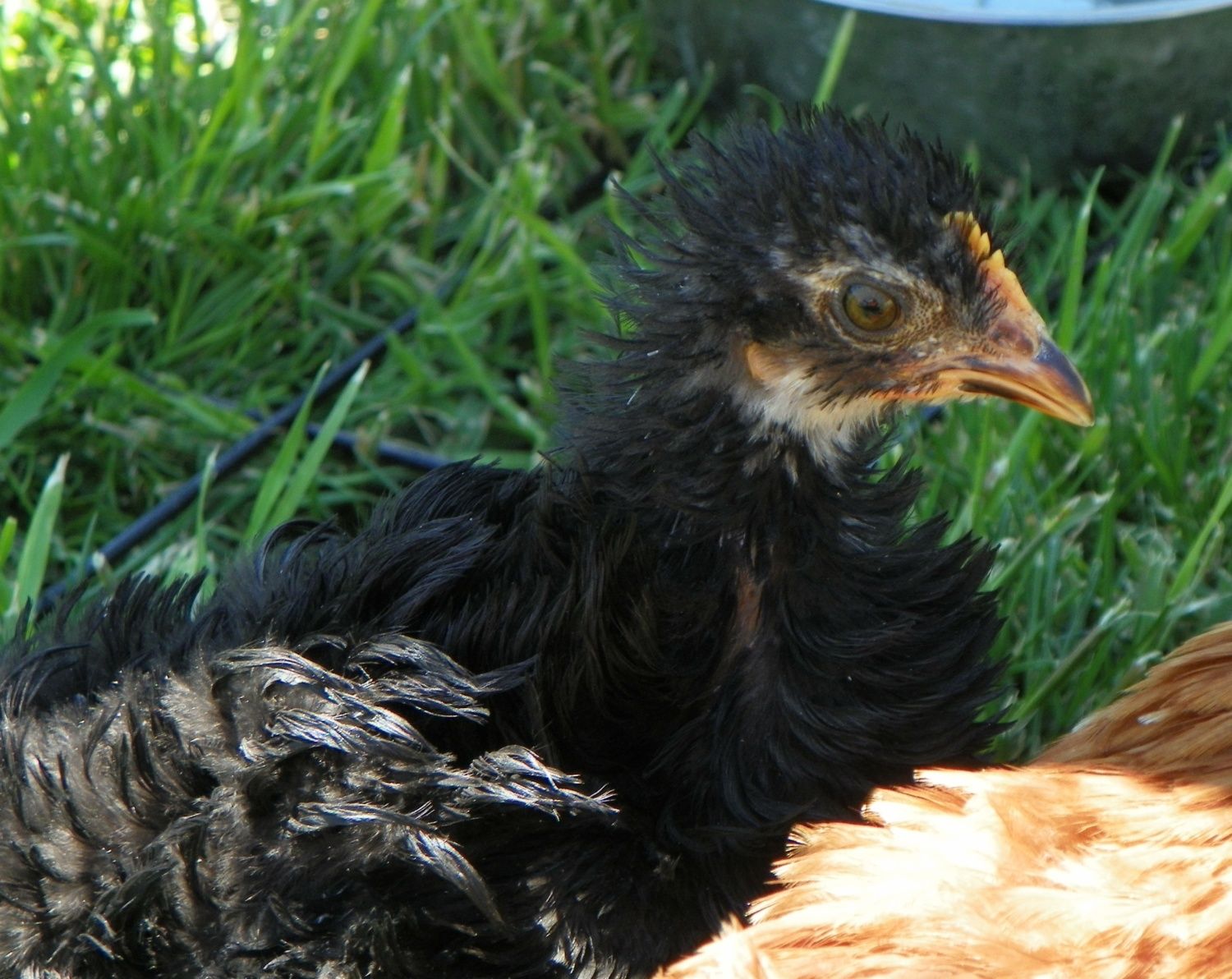 This is my small flock of five. One white frizzle, one black frizzle, and two (what are supposed to be Frizzles) reds. I also have one blue 5-6 week old silkie chick. Not sure if they are all hens or cockerals though...