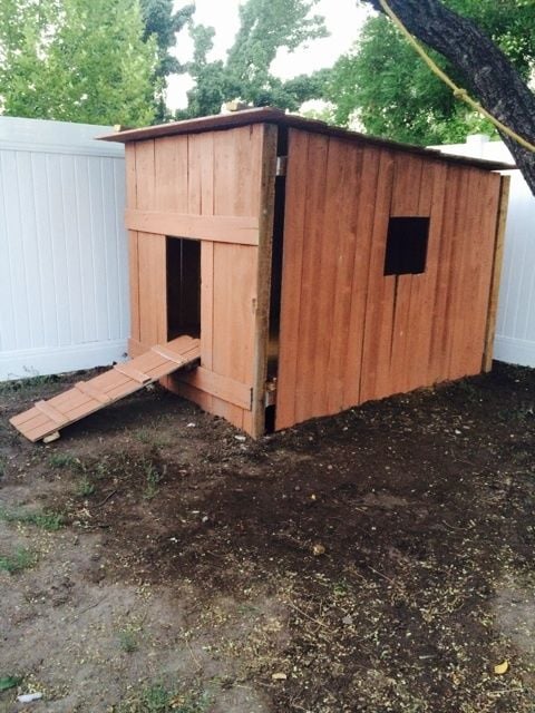 What I would do differently is make the run bigger. However we let our chickens free range all over our yard every day. We spent no money on this except for the hinges and the roof. We reused everything else from past projects!
