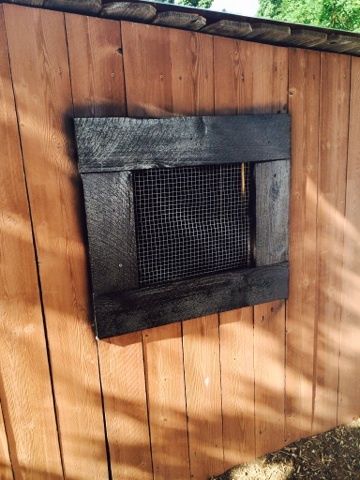 We added chicken wire to the inside of the window and put a frame around to secure it. We painted it spray painted it black to make it look nicer. (we cleaned up the edges)