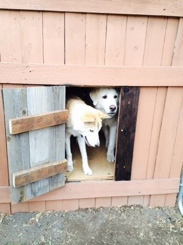 Our malamute mix puppy and Great Pyrenees checked the coop out and approved of it!