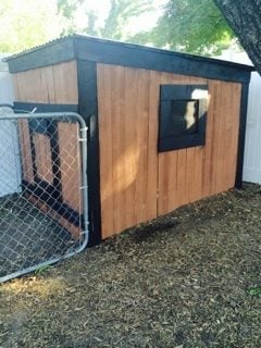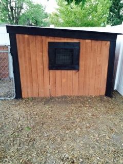 Here is the finished coop! After, we added a roost and nesting boxes. (it looks small in the pictures, but it can fit 6 chickens