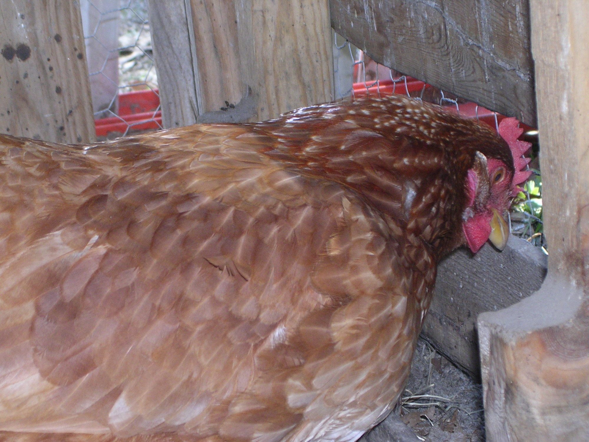 They are the most funnest things that's why I love them so much! Today our rooster (who I think is gender confused) he goes into the nesting box and goes and starts crowing a little bit and the girls ran to him! They are just so silly too. This is our wonderful rooster who is a (gender confused chicken) He is so pretty.