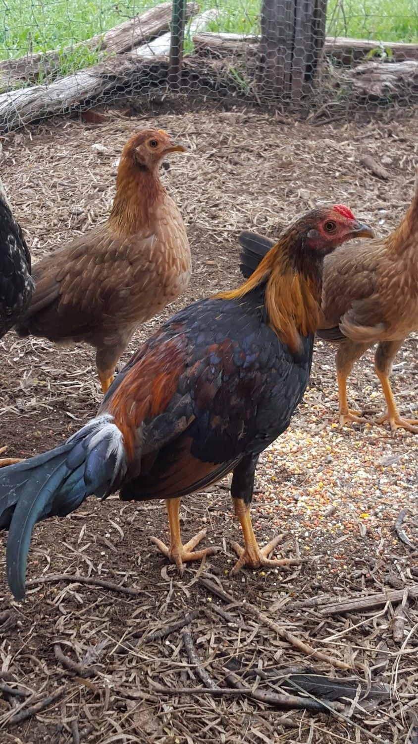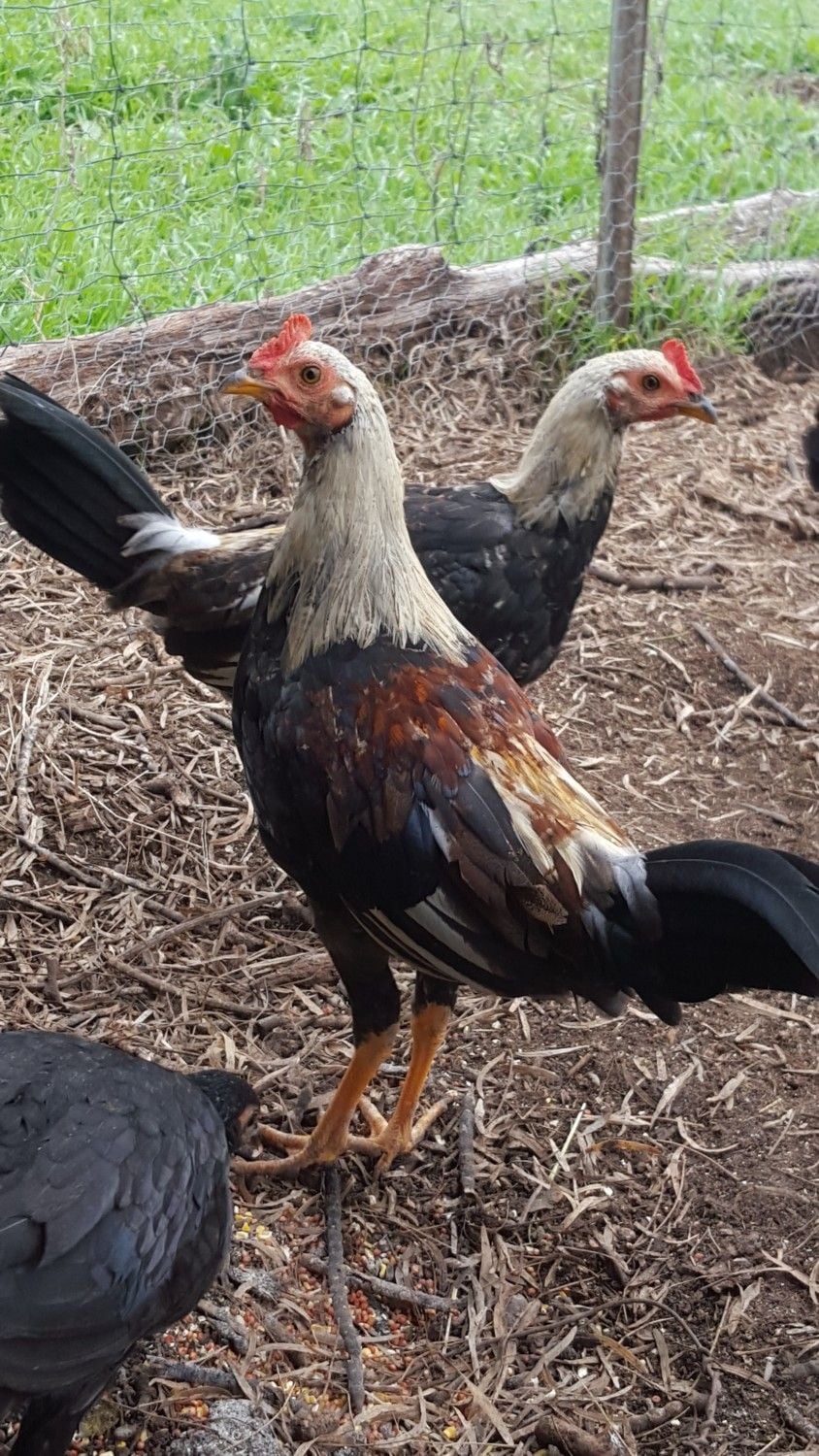These are my Birds that I have been recently raising. some started out as city slickers and became country. now I dont know the breeds of all of them and would like your help identifying them. some of the hens were originally mine when i lived in San Angelo TX. about the time i moved out to my grandfathers farm I was given the opportunity to capture several Ferrell chickens in a neighborhood blocks from my home. it took 2 nights to catch 12 extremely wild chickens and one rooster. I rebuilt the hen houses at the farm and put them in there for several weeks trying to unsuccessfully tame them. i finally let them out of the coop and my 8 pets too. they free roamed the place until the neighbors dog and mine started thinning them out. got the dog problem taken care of (no dogs injured one was relocated in the family and one pinned up better.) with the remaining hens and last rooster they hatched a total of 10 chicks between 2 hens. since one of the ferrel hens had six i took her babys and introduced them to one of my tame hens to raise inside the coop. unfortunatly the ferrell hen was killed by a large barn owl im still trying to get rid of. the remaining chickens are cooped up once again to protect them from the owl.