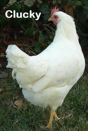 “Clucky”, as I called her, was my first experience of owning a chicken. My hometown is St. Louis and I lived in the heart of the city so chickens were not something I ever was around. I am a veterinary technician so animals are important and I love having many pets. But I never considered chickens until I found Clucky. I worked in Columbus, OH and lived in the suburbs. We had an acre of land so had room. I traveled a lot for my job and periodically found injured animals to nurse. On one travel day on I-70, I zoomed passed a white blob on a small bridge against the median and pulled off right away. I backed up to find a huge white chicken plastered up against the wall of the bridge, terrified. I waited until it was safe, ran across the 2 lanes of highway, grabbed her before she even knew I was there and was back in my vehicle within a matter of a minute or less (I never moved that fast before in my life---LOL). She was not injured at all, which shocked me. She did have some scrapes on her left face where she was up against the concrete wall of the bridge, apparently from pushing up against it hard as all the traffic whizzed by. She had her eyes closed and that’s why she didn’t see me coming. She huddled close to me as I drove down the highway, tucked in my coat as I talked to her. She was very frightened as you can imagine, but she did not fight me or try to fly away from me inside the car. I was able to find a box to set her in on my first stop and she seemed very content. I called my husband to tell him of this weird story and he was actually delighted that I was able to rescue her; he had no problem with her coming to live with us. I do not have any idea how she ended up where she did. I know people do not believe me at first when I tell this story because it is too unbelievable; sometimes I think they made it up just to own a chicken, lol. But this is how I found her, truthfully.