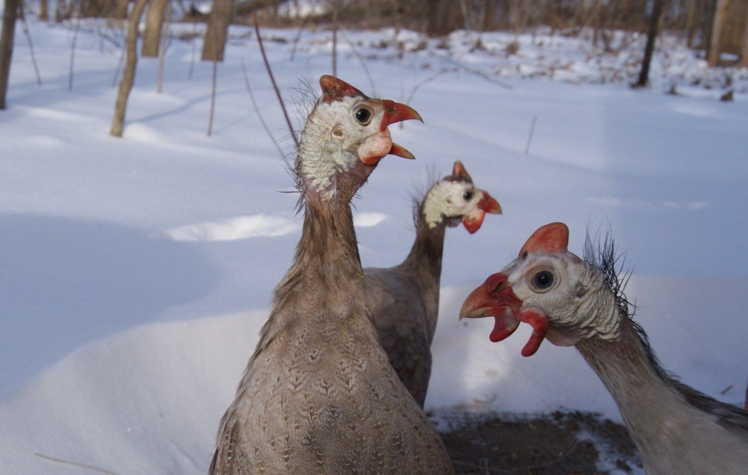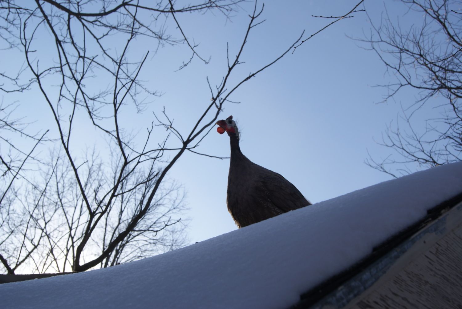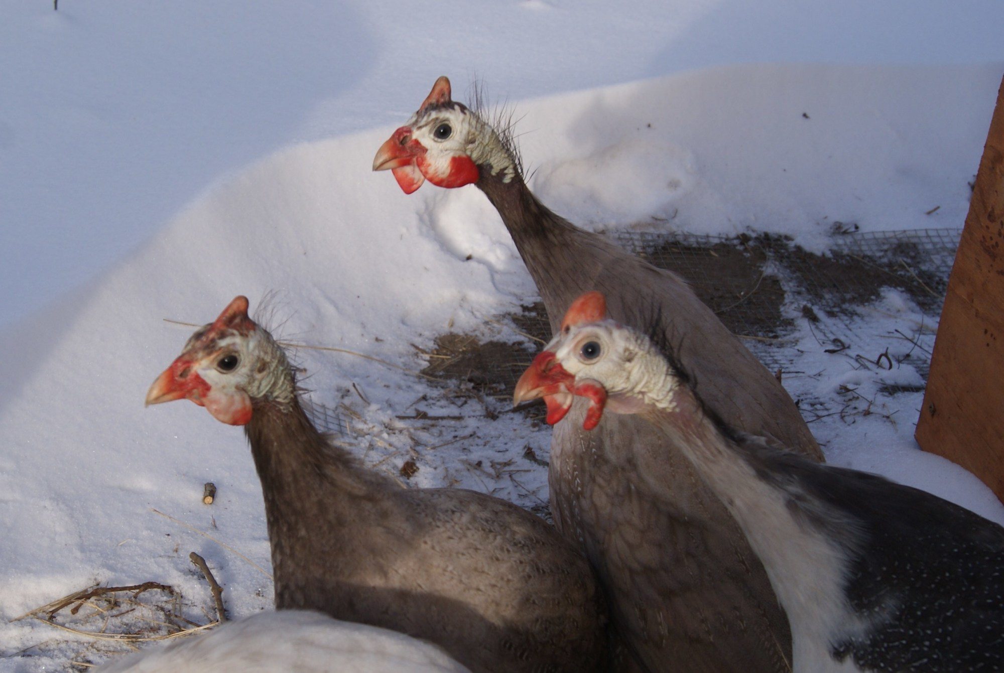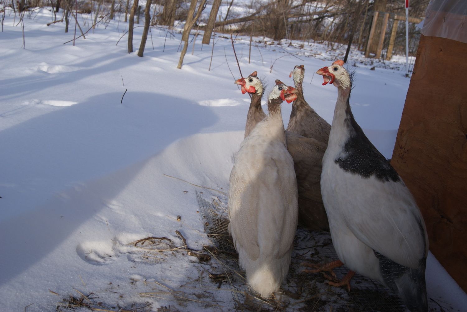 Guineas out in the first snow (see update below and use caution when releasing guineas after the first snow):