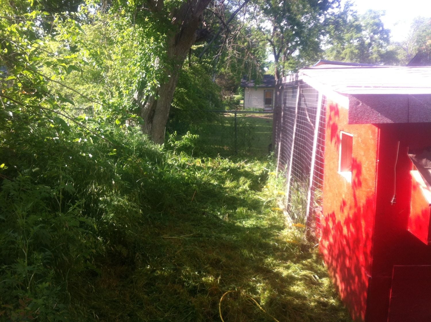 While working on this I commented to my wife that I really missed having chickens. She felt the same way. We had tried to sell our pen and coop, but no one wanted it. We decided to get a few more chicks. First we had to clean out the brooder box and then the coop and pen. Since we hadn't had any chickens the weeds and grass had grown up inside the pen.