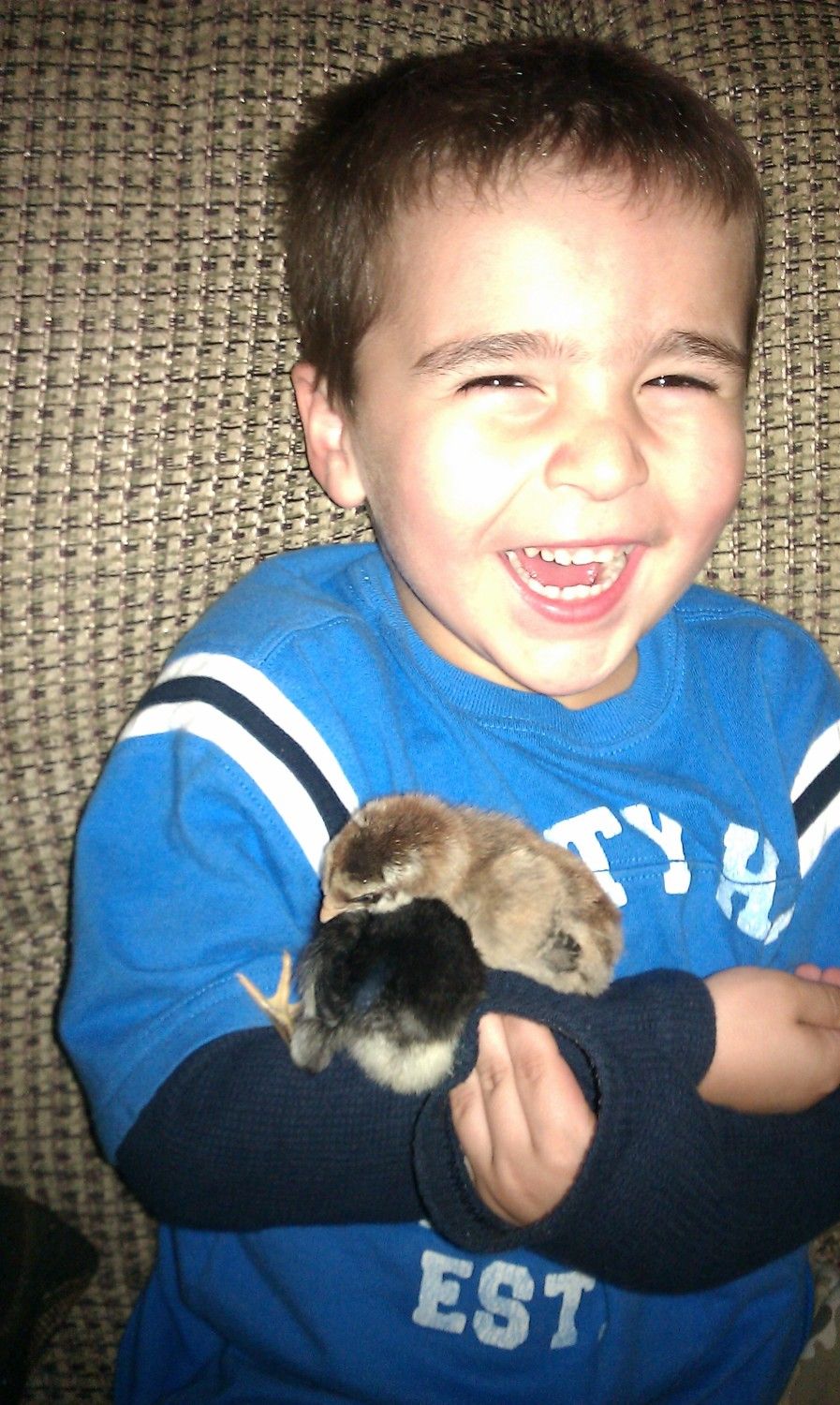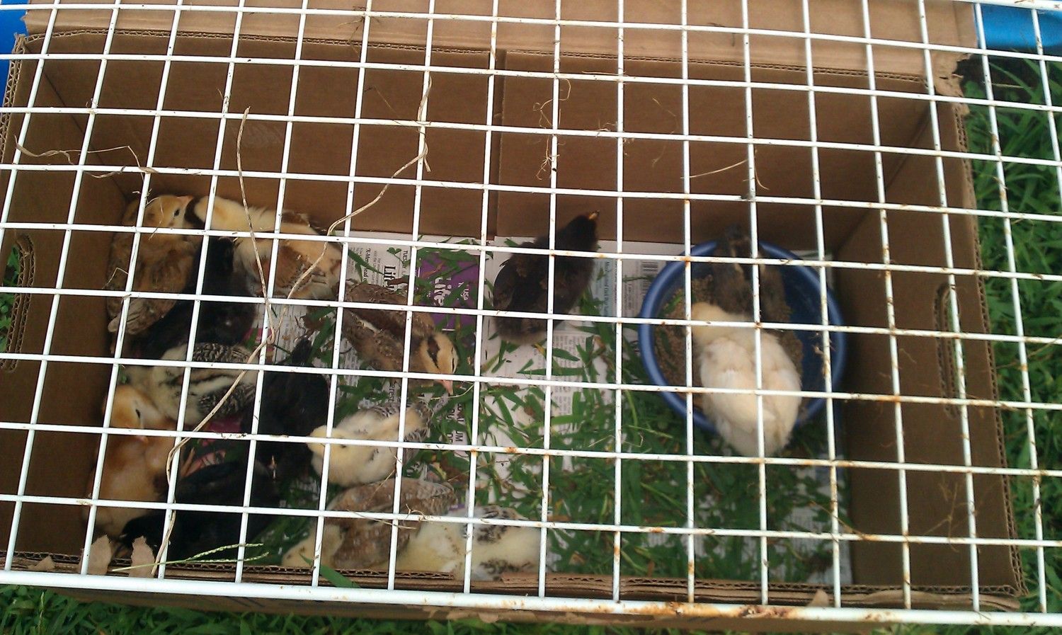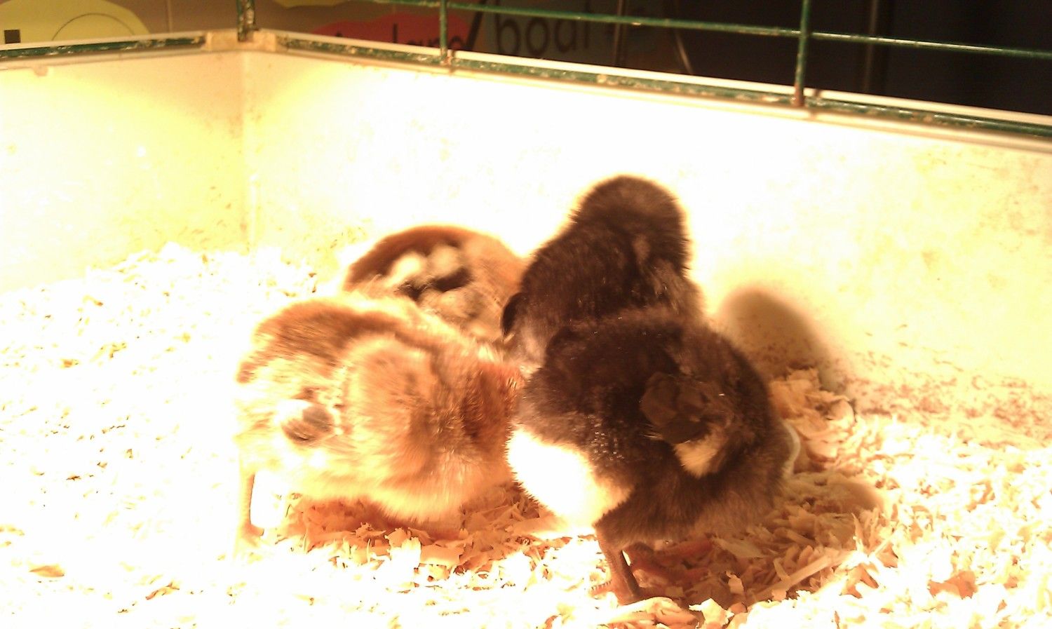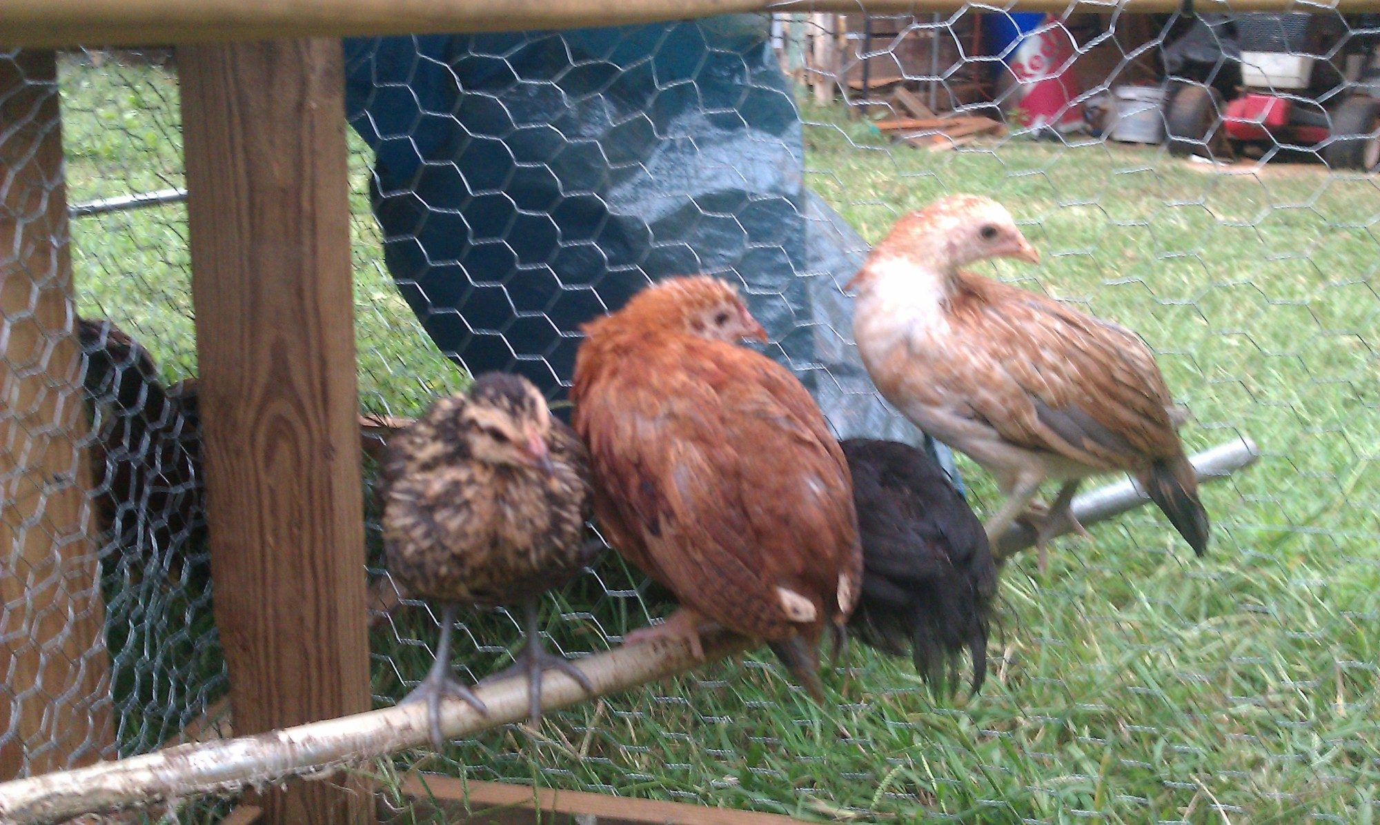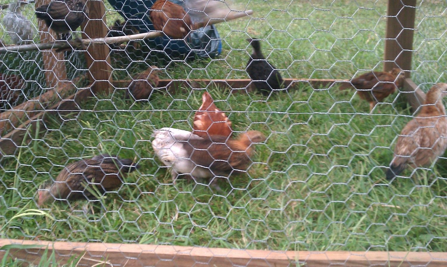 Our first set of babies, which all turned out to be roosters! After realizing we had 9 roo's, we picked one to keep and traded the rest for new babies... 35, plus we bought to older hens. Our hens and babies are just backyard mutts, but we love all the differences in them.