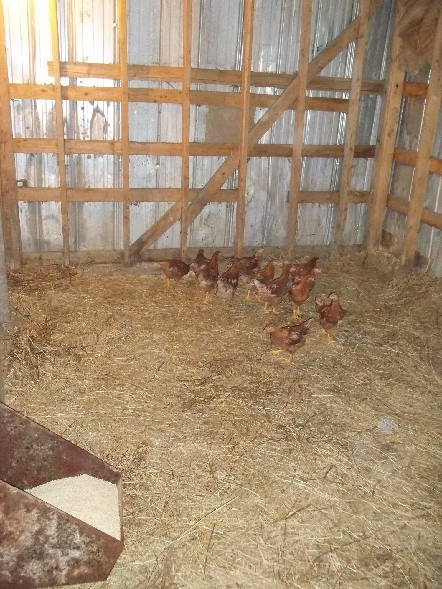 We haven't built the nesting boxes in there just yet, since it will still be awhile before they start laying. Also we haven't built a roost in there yet either....something we plan on doing this week! The outside run will also be built this week....so the 'girls' are patiently waiting for that!